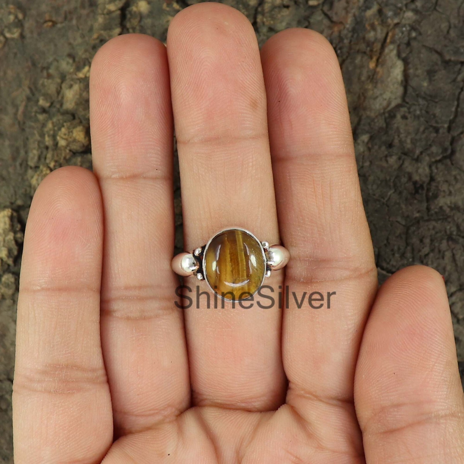 как выглядит Tiger Eye Ring 925 Sterling Silver Boho Statement Handmade Silver Gift Jewelry фото