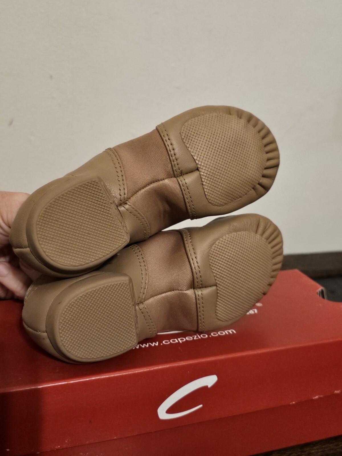 как выглядит Capezio Stretch Jazz Shoe Dance CG15C Carmel Tan Leather Child size NEW фото