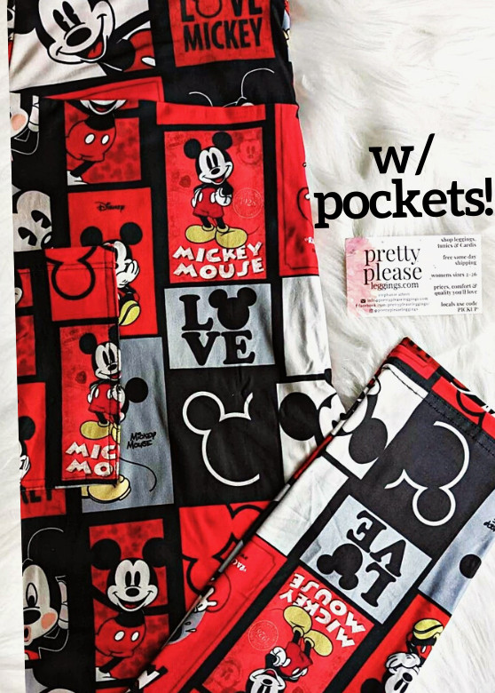 Mickey Mouse Patchwork Super SOFT Leggings Disney Minnie Magic Kingdom OS TC rts