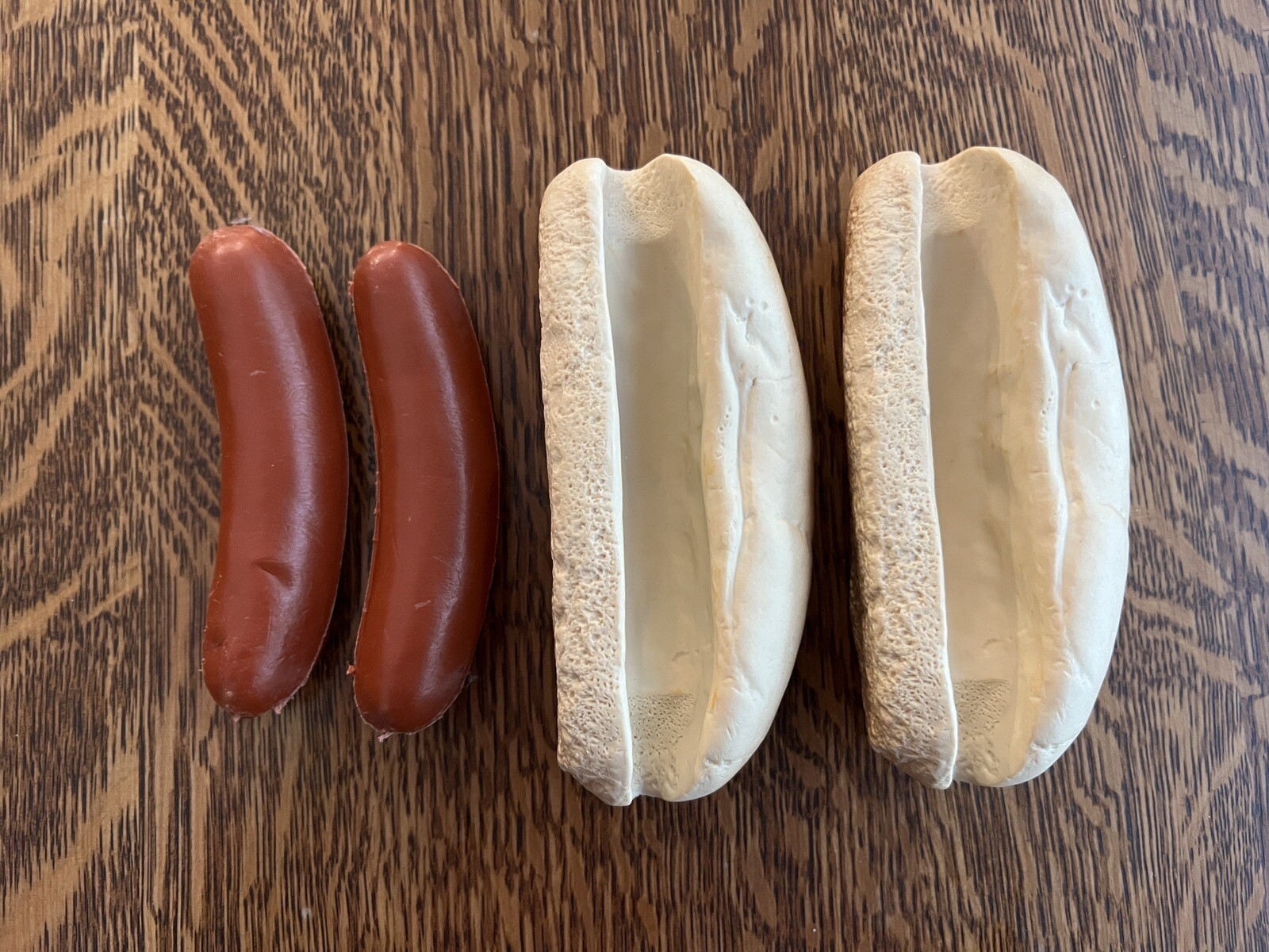 HOT DOG Vintage 1987 MTC Realistic Play Food Prop Ketchup Mustard Potato Chips