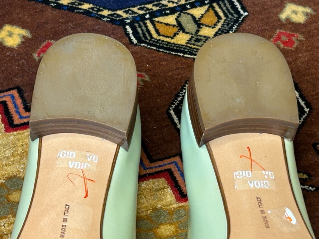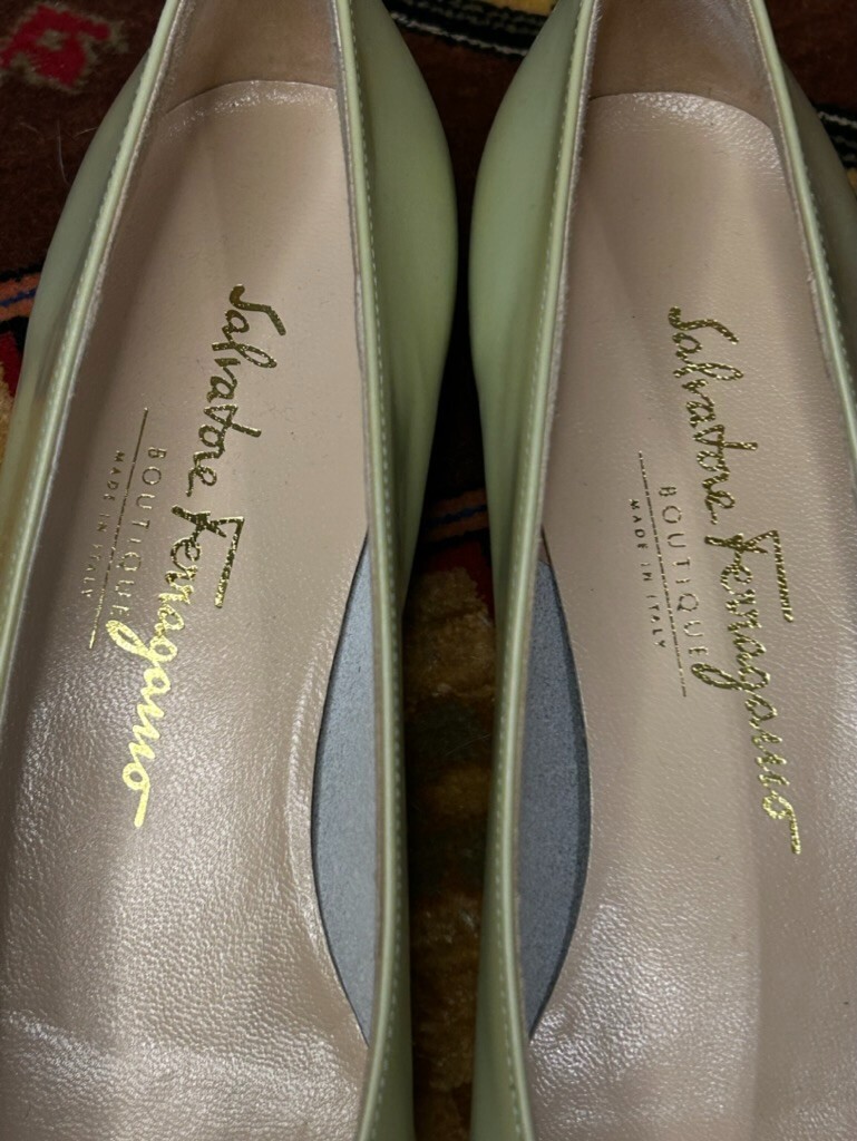 как выглядит Salvator Ferragamo Mule Heels Size 8 Width AAAA Pistachio Green and Gold фото