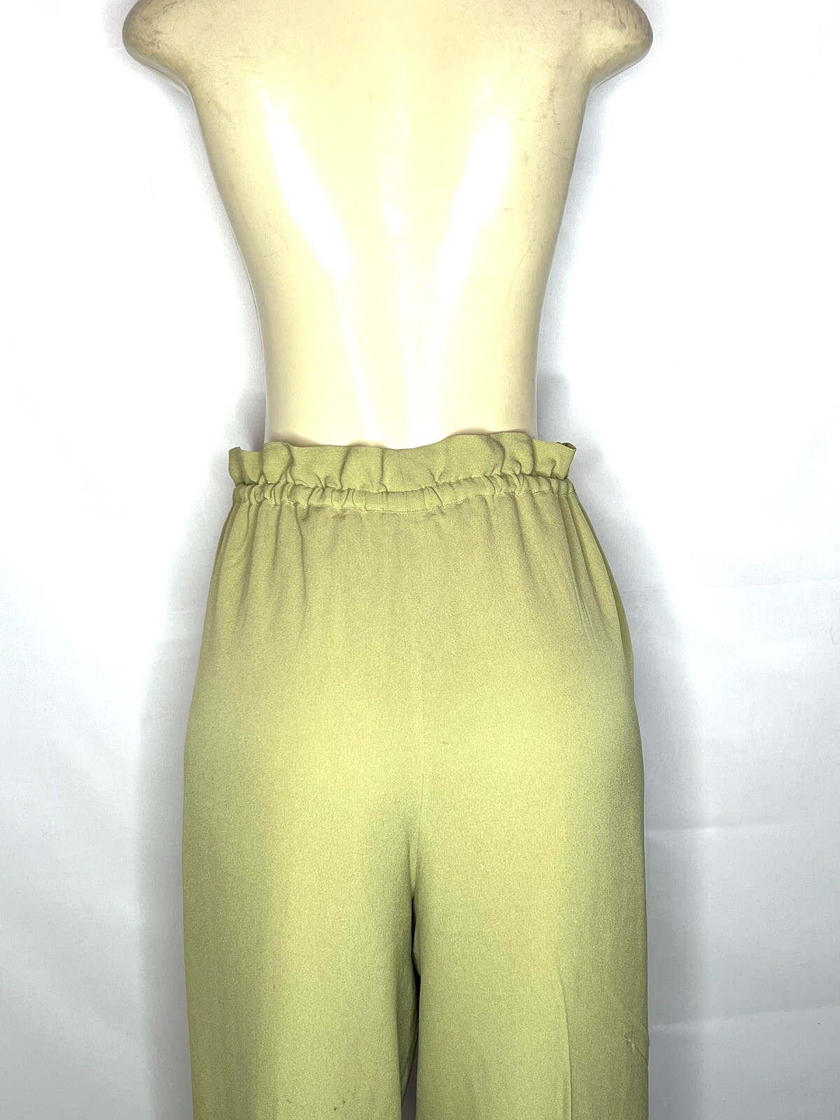 как выглядит VINTAGE PANT YL BY YAIR CELERY GREEN 100 SILK DRAWSTRING WIDE LEG SIZE 12 фото