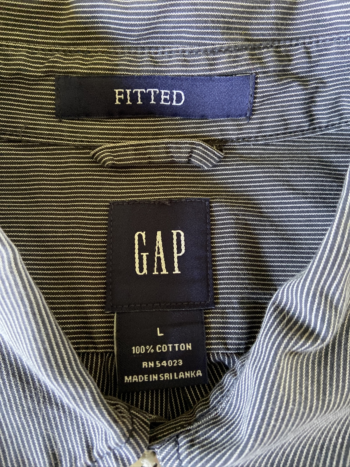 Men s Gap Fitted Gray Striped L/S Dress Shirt 100 Cotton Size L