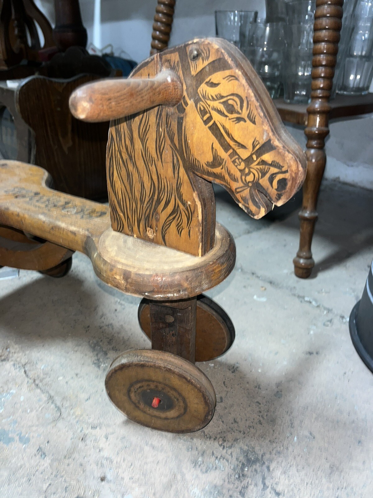 как выглядит Vintage Choo Choo Wood Toy Riding Horse фото