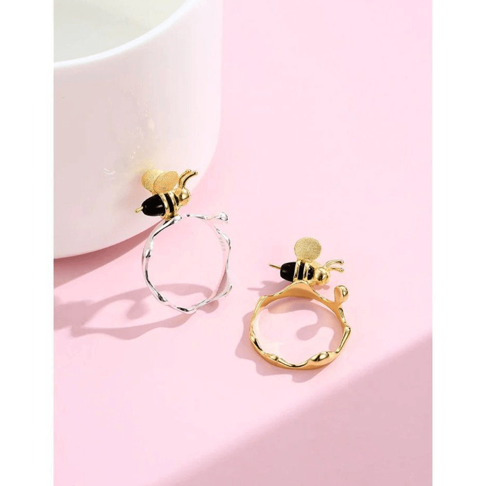 925 Sterling Silver 18K Gold Plated Honey Drip Bumblebee Ring Size 9