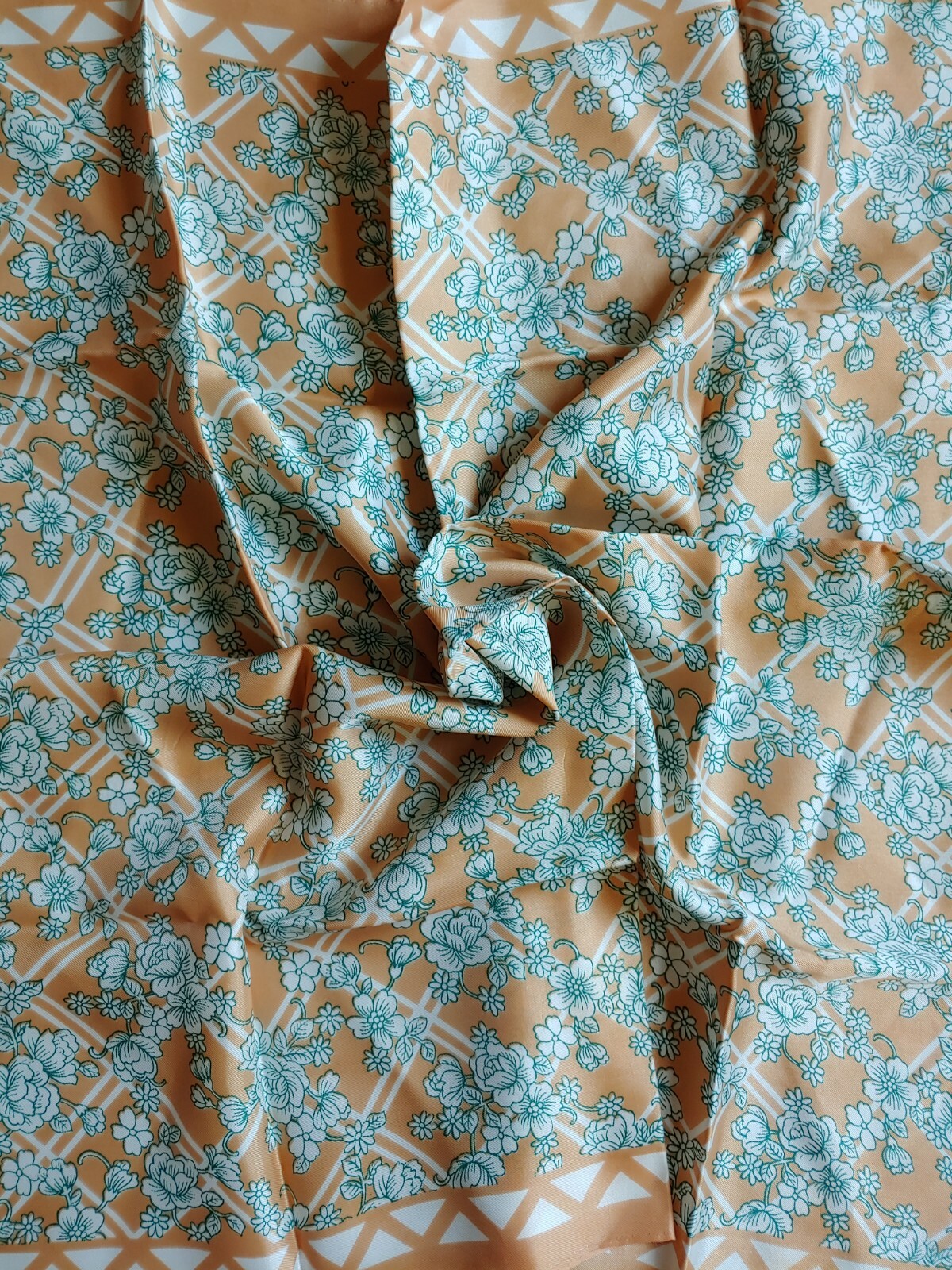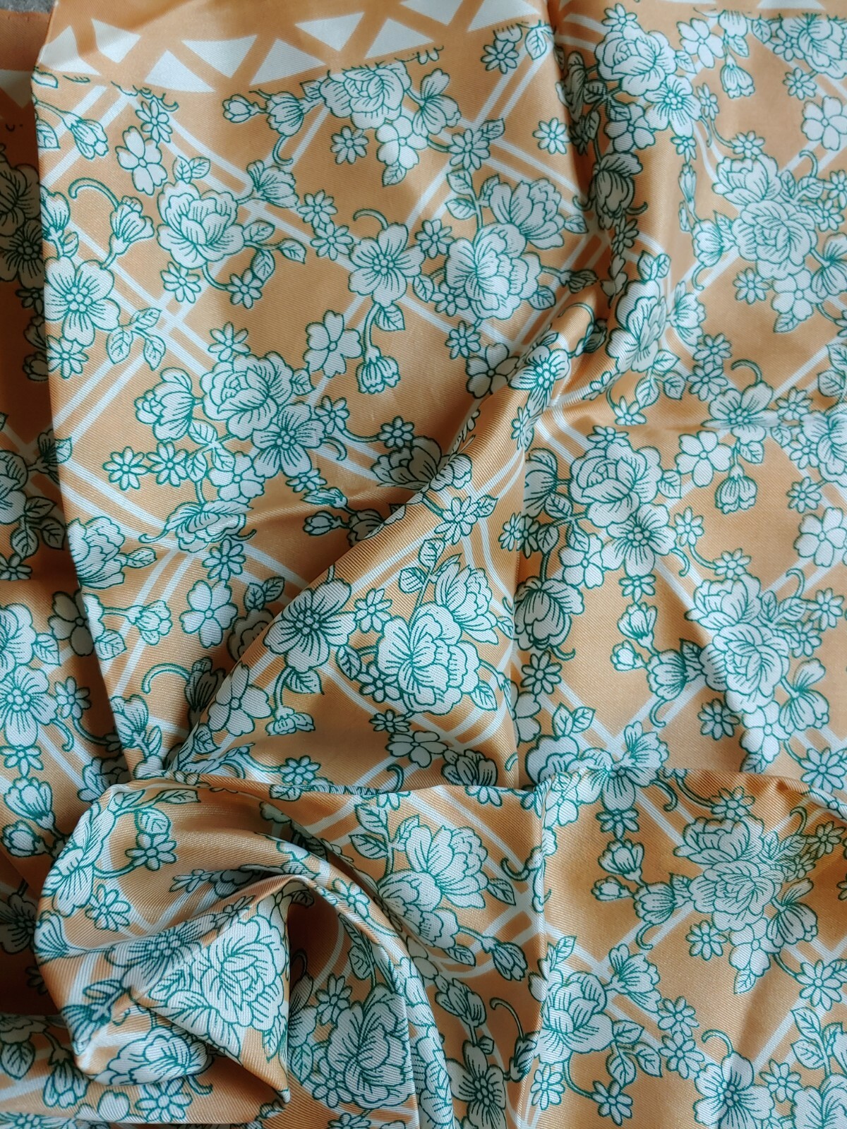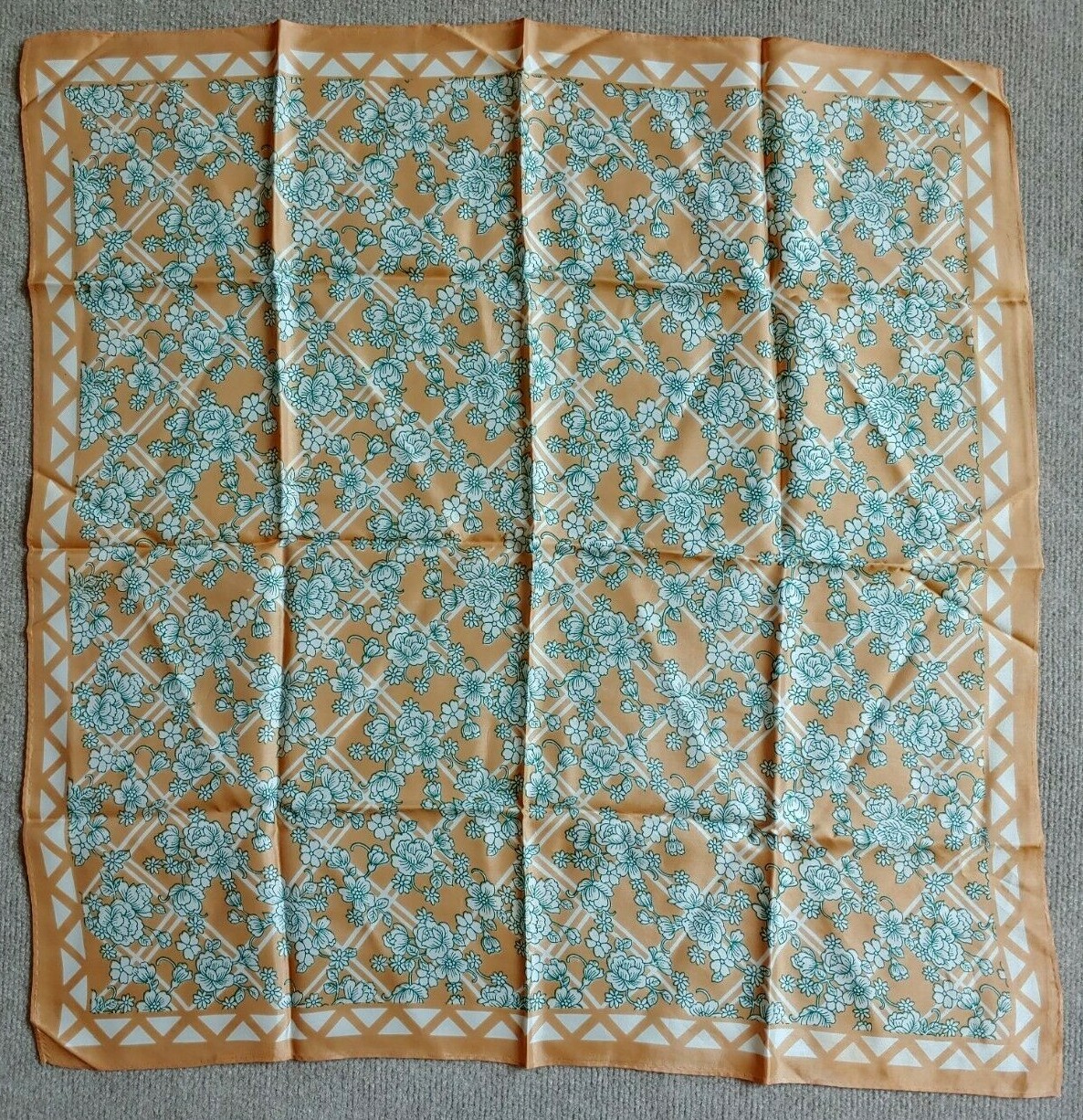 как выглядит Vtg Floral Fashion Scarf Beige White Green Square 26" Head Neck Business Lady фото