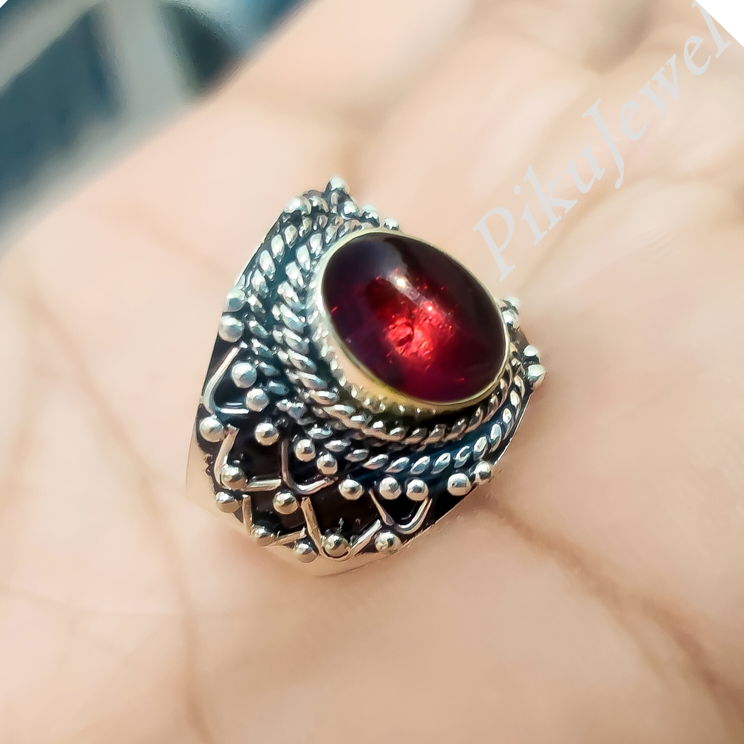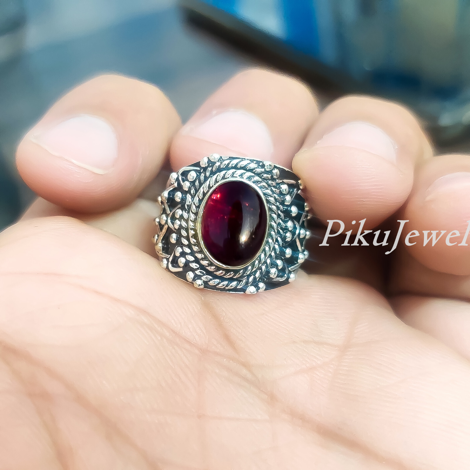 как выглядит Natural Garnet Red Gemstone 925 Sterling Silver Unisex Ring Husband Gift Jewelry фото