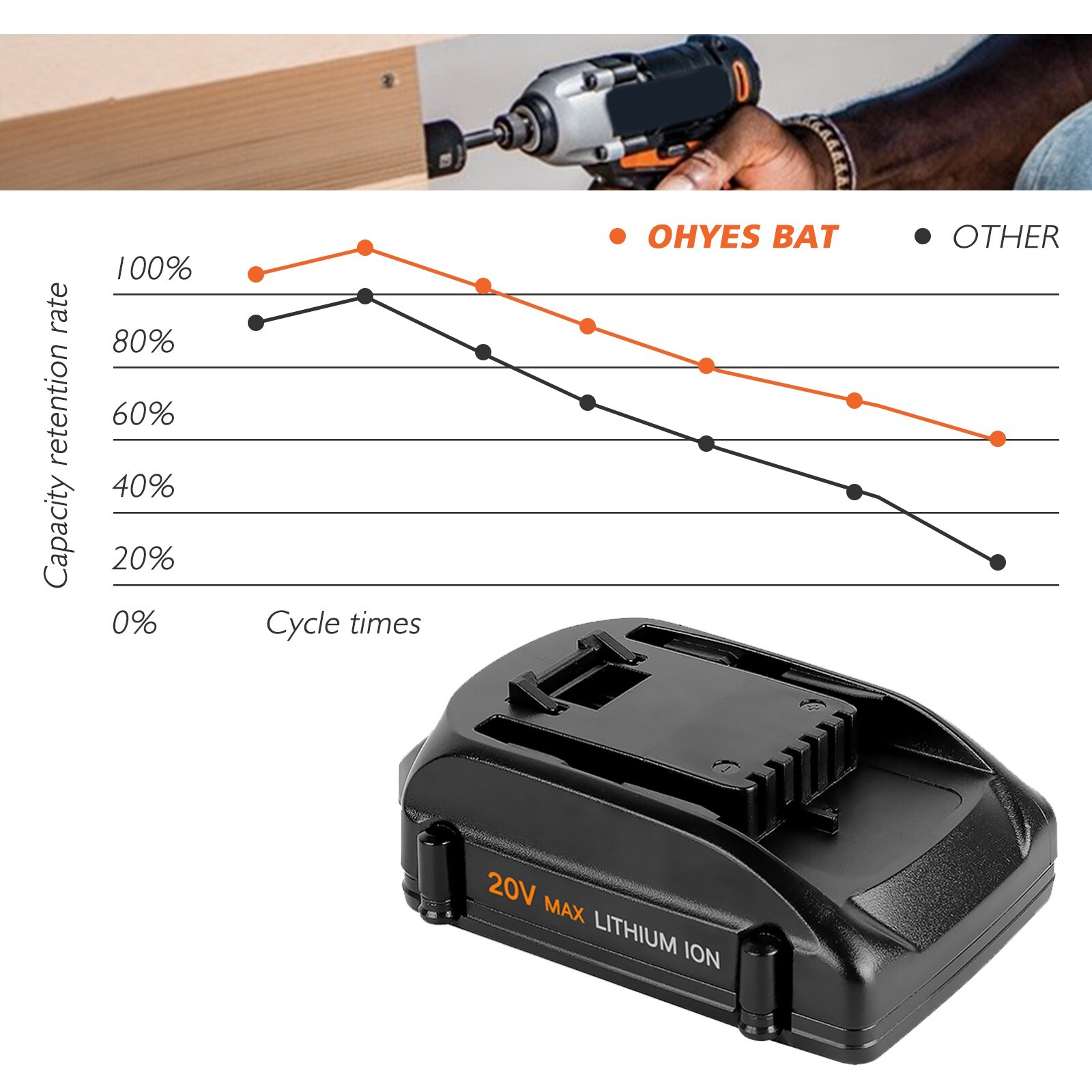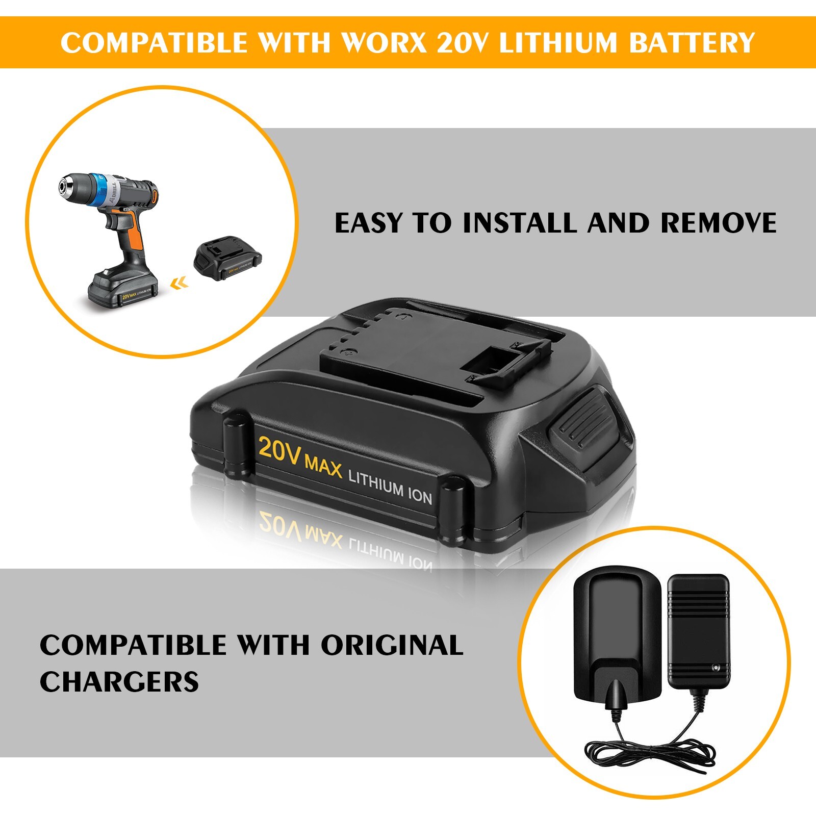 2pack For WORX 20V MAX Extend Lithium Battery 20 Volt WA3520 WA3525 WA3575 WG155