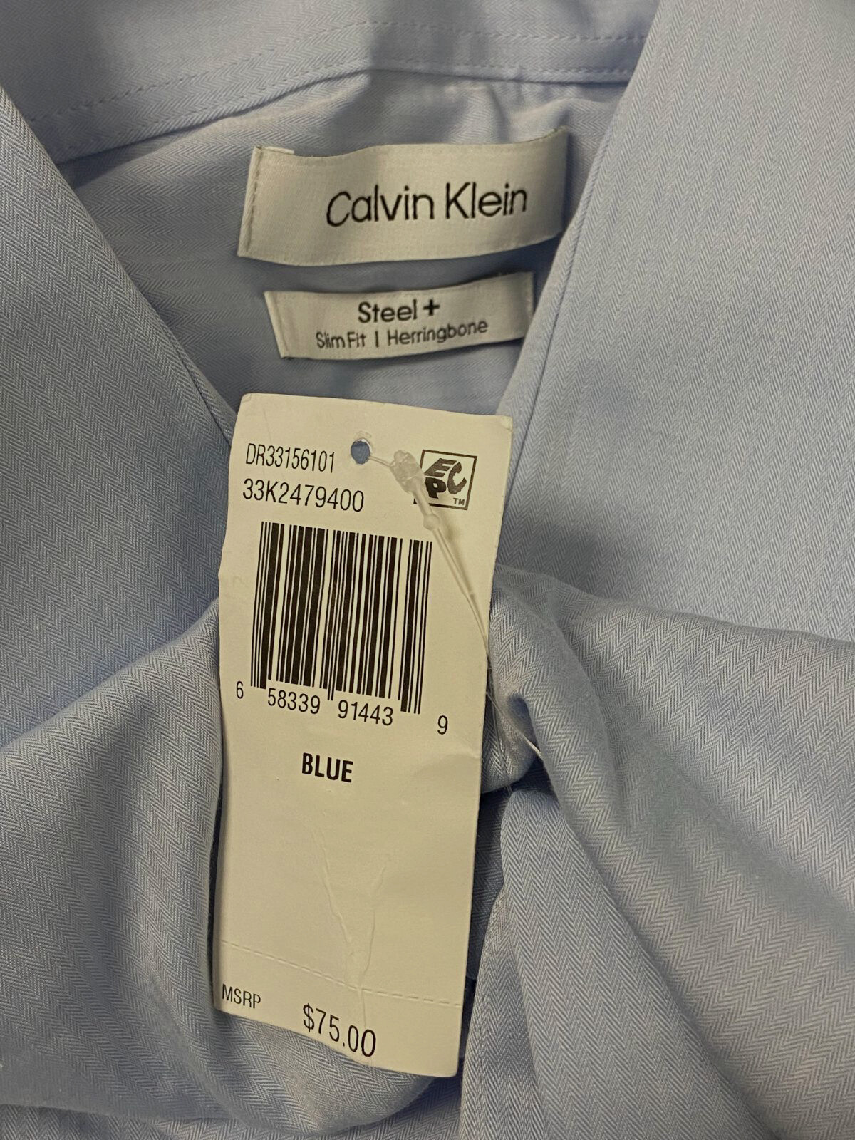 80 Calvin Klein Men Slim-Fit Blue Long-Sleeve Non-Iron CK Dress Shirt 15 34/35