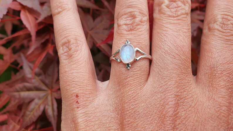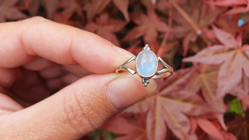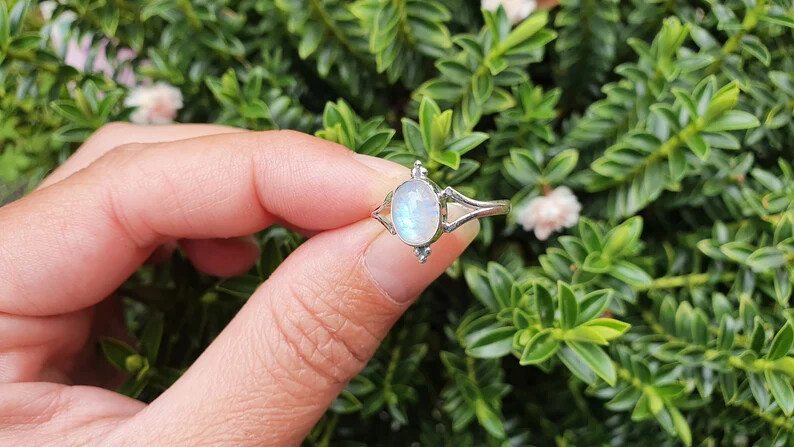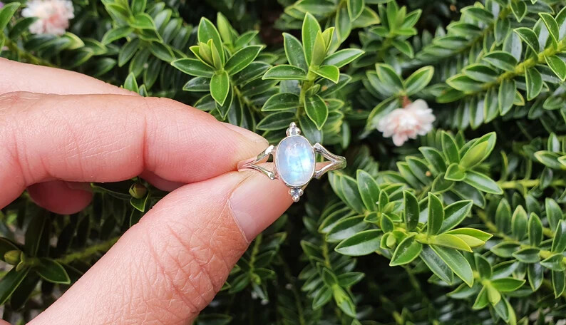 как выглядит Oval MOONSTONE 925 Sterling Silver Band Statement Ring Handmade Ring All size фото