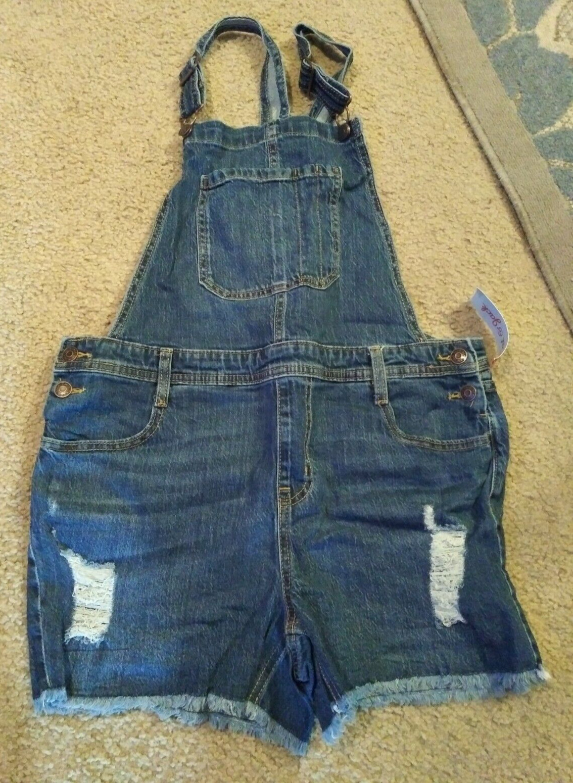 как выглядит Cat Jack Size XL 14-16 Plus Raw Hem Coveralls Bib Denim Shorts Pockets фото