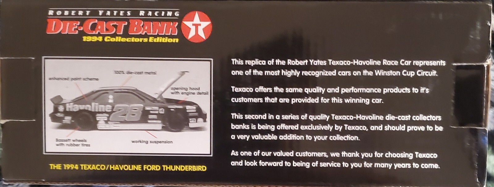 • TEXACO/HAVOLINE 1994 FORD THUNDERBIRD 28 ROBERT YATES DIE-CAST BANK NEW IN BOX