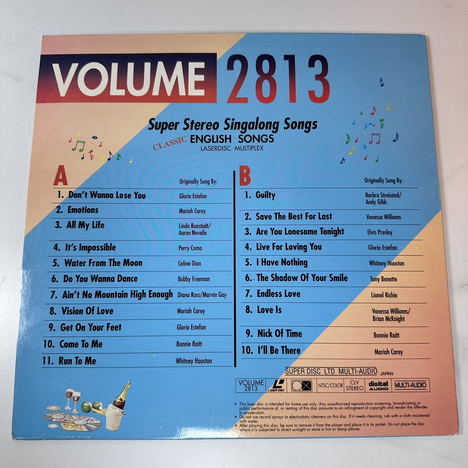 Karaoke Laserdisc Super Sing Along Stereo Songs Volume 2813 English Songs VG