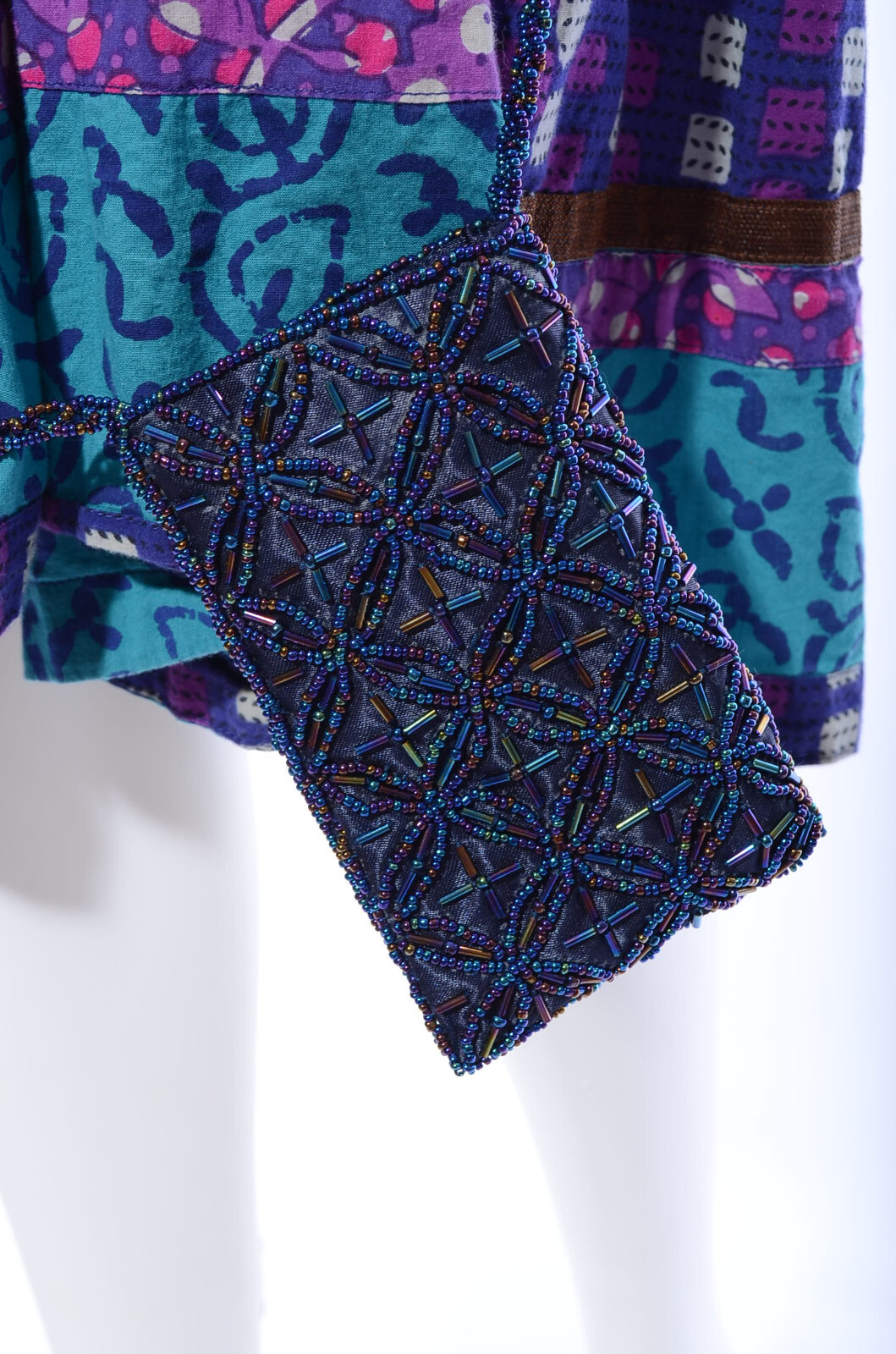Vtg BEADED Iridescent Gypsy India Boho Hippie Tiny Satchel Pouch Small Purse Bag