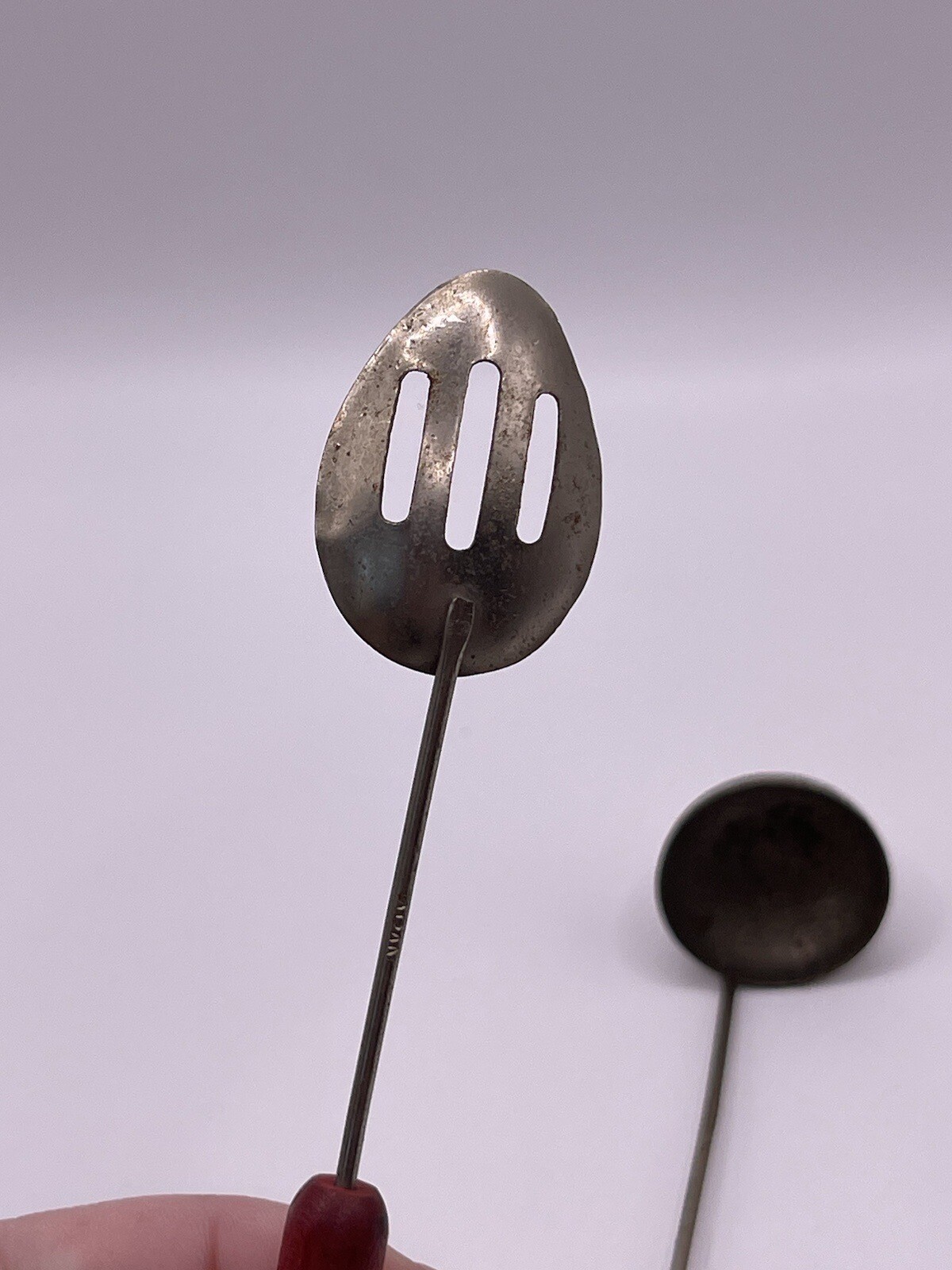 как выглядит Vintage 1940s Mini Utensils Red Wood Handle Toys Japan Rusty фото