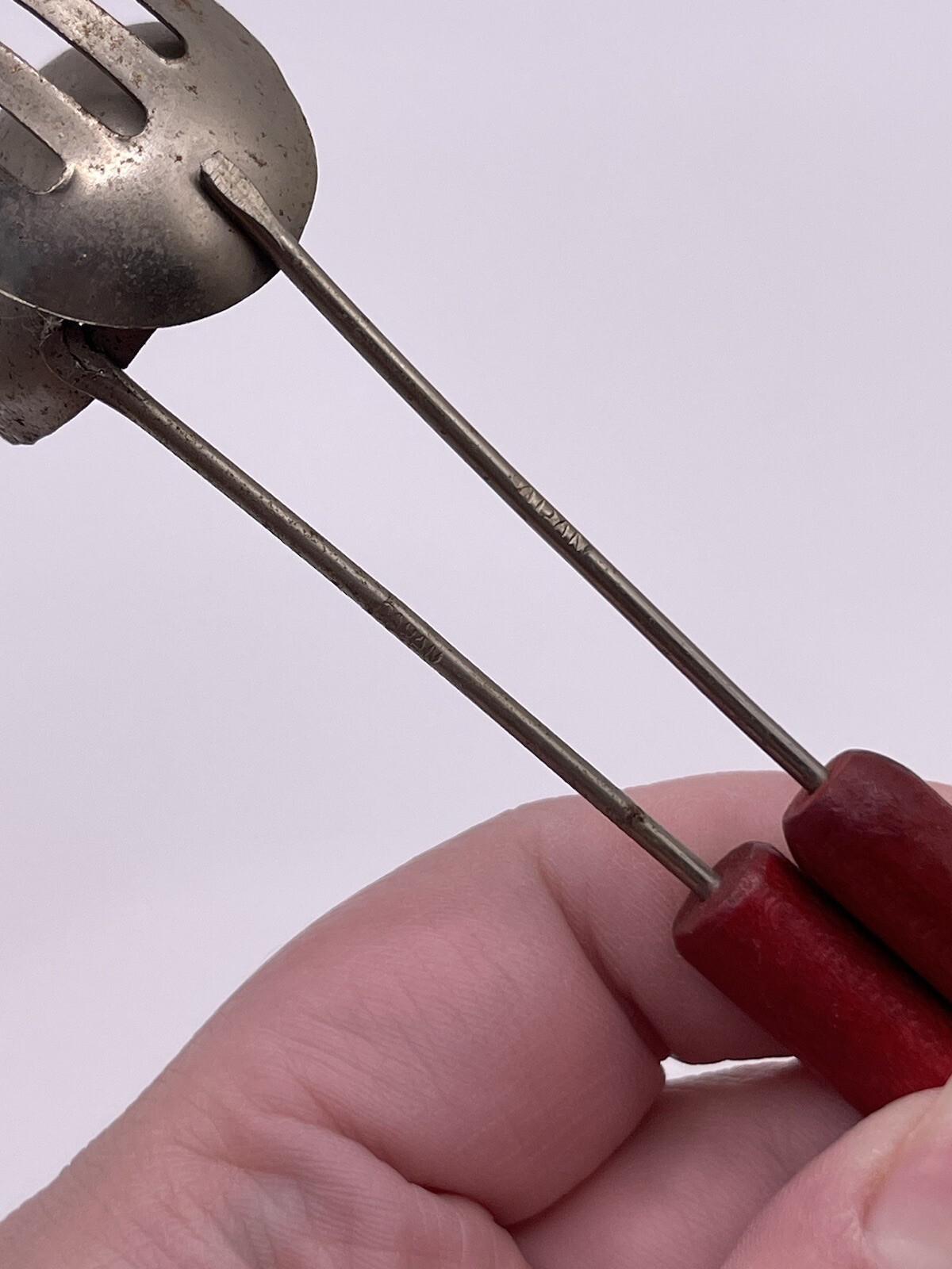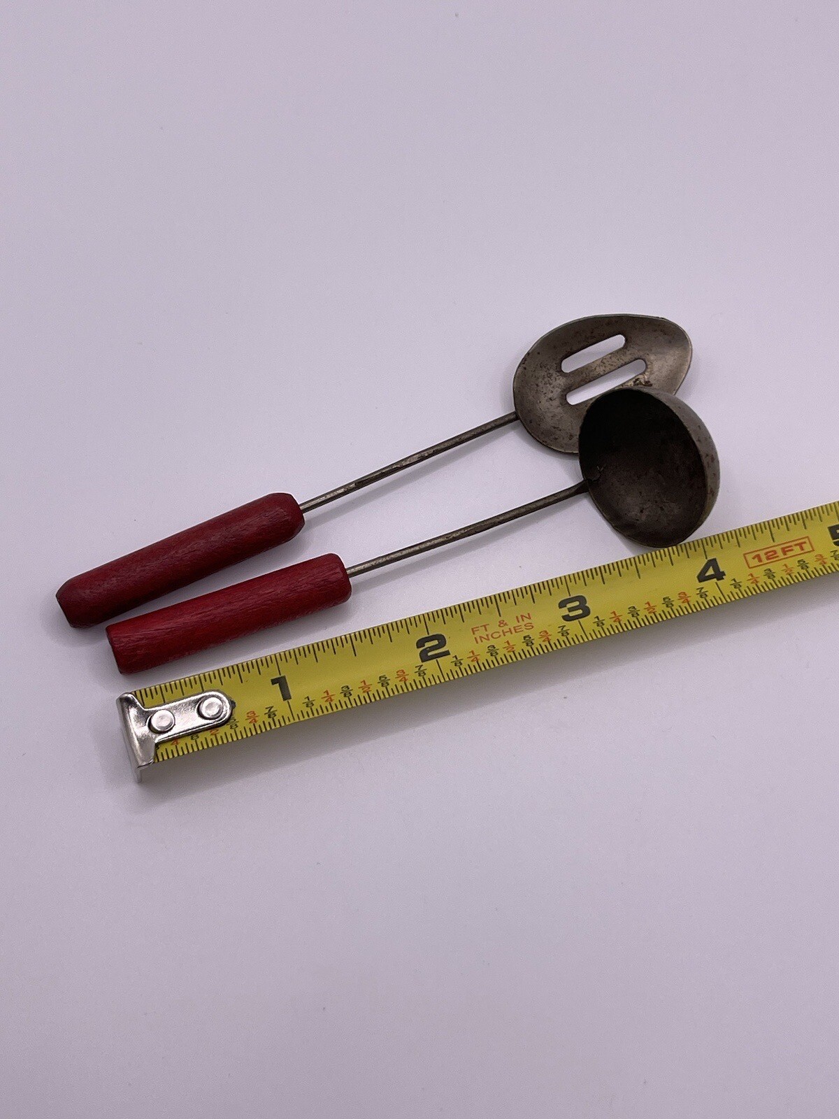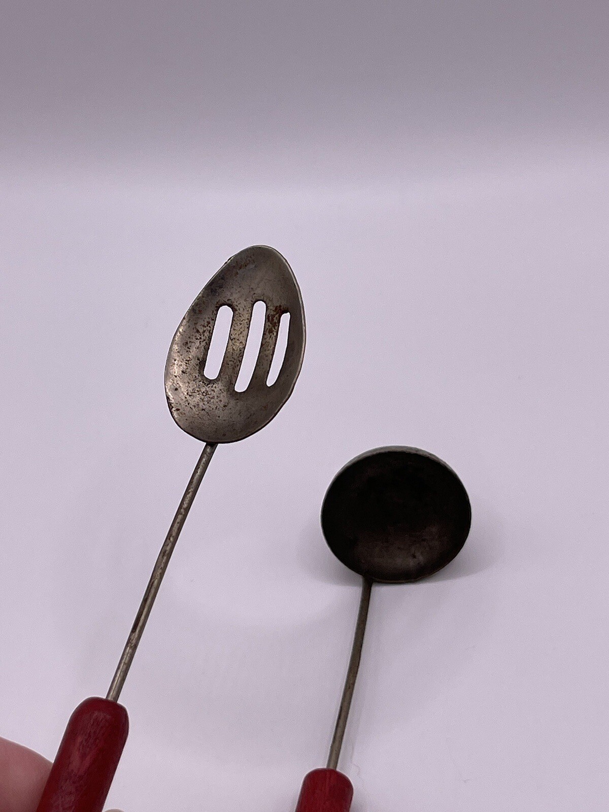 Vintage 1940s Mini Utensils Red Wood Handle Toys Japan Rusty