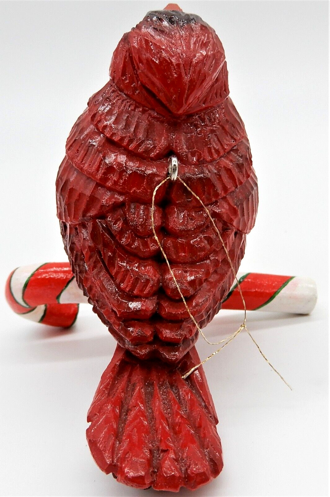 Cardinal on Candy Cane Hanging Christmas Ornament