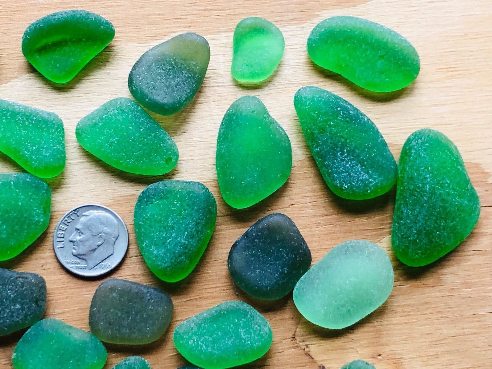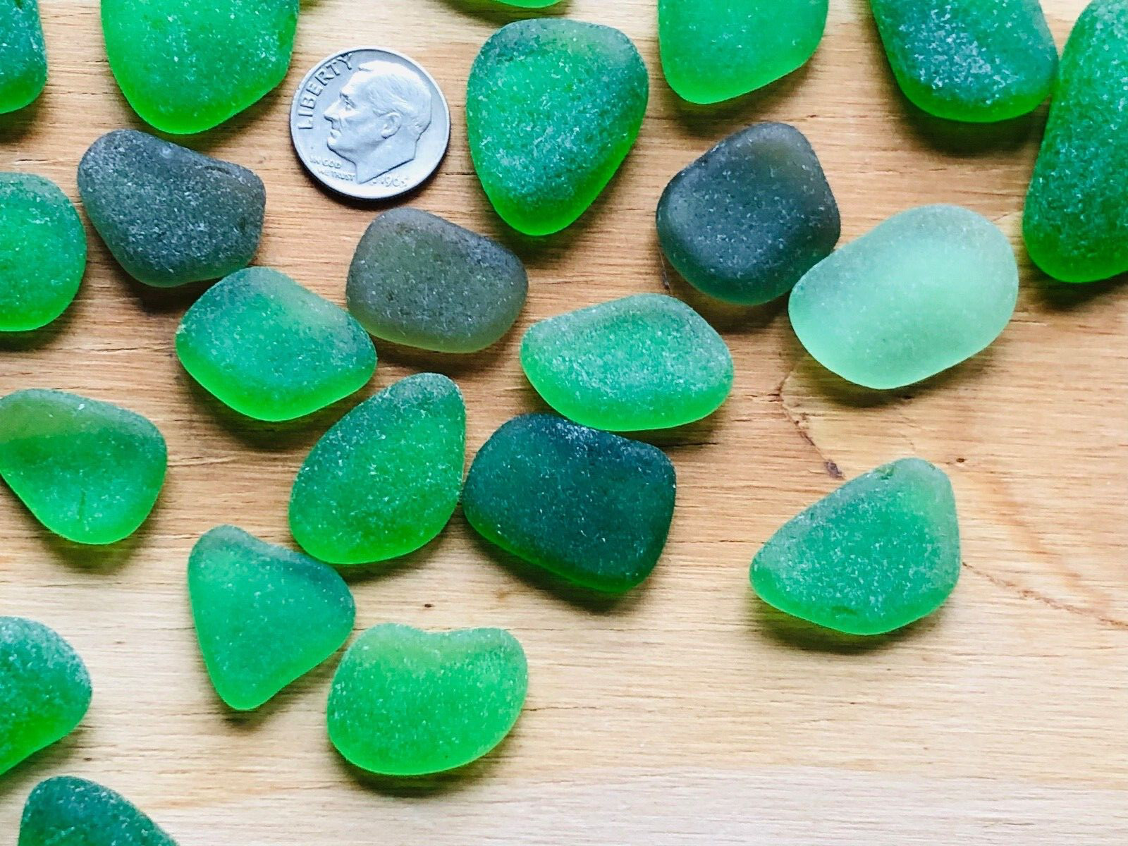 Lot of 41 VARIOUS GREENS Surf-Tumbled Genuine SEA Beach Glass MED-LG