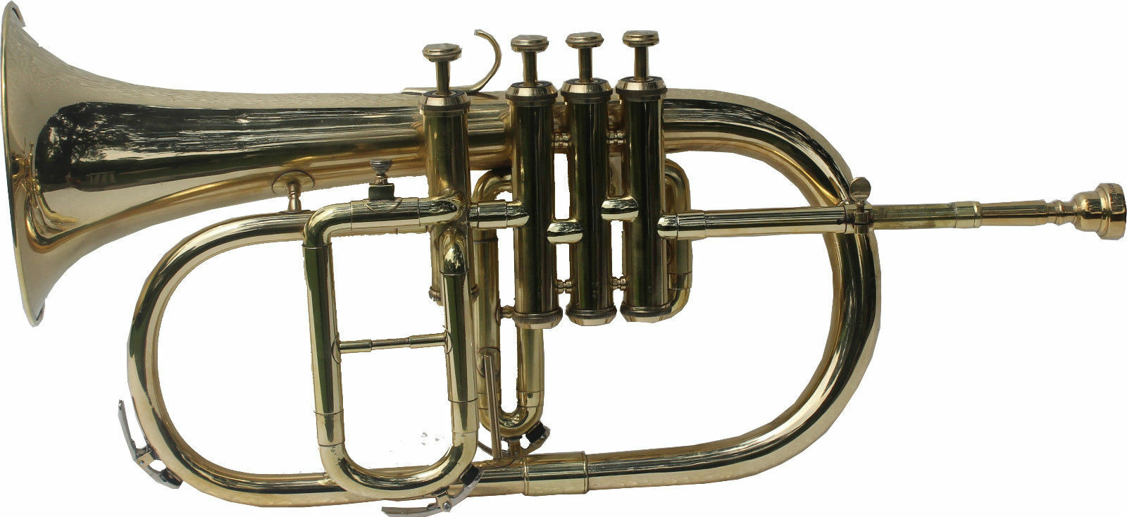 New-Bb-4-Valve-Flugel-Horn-BRASS FINISH--Free-HARD-Case-M-P