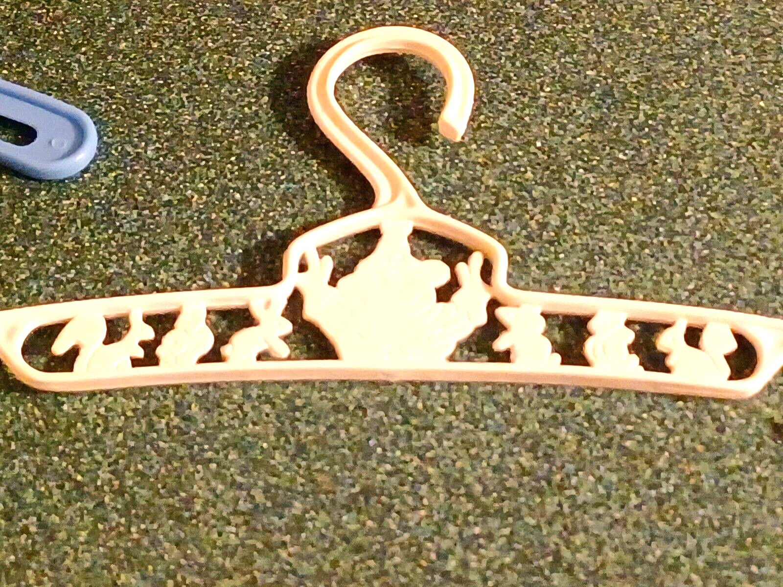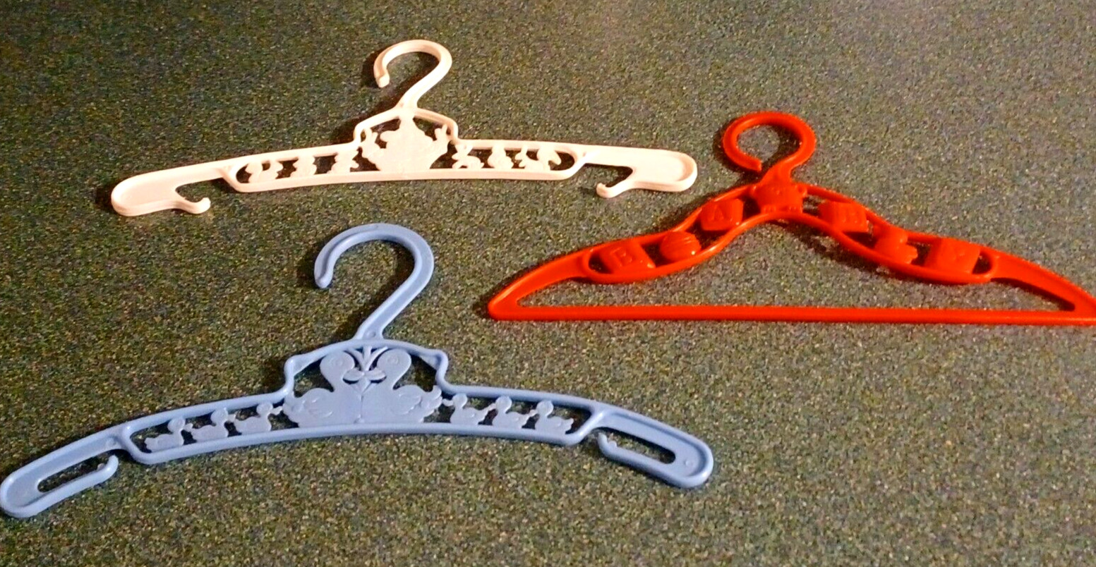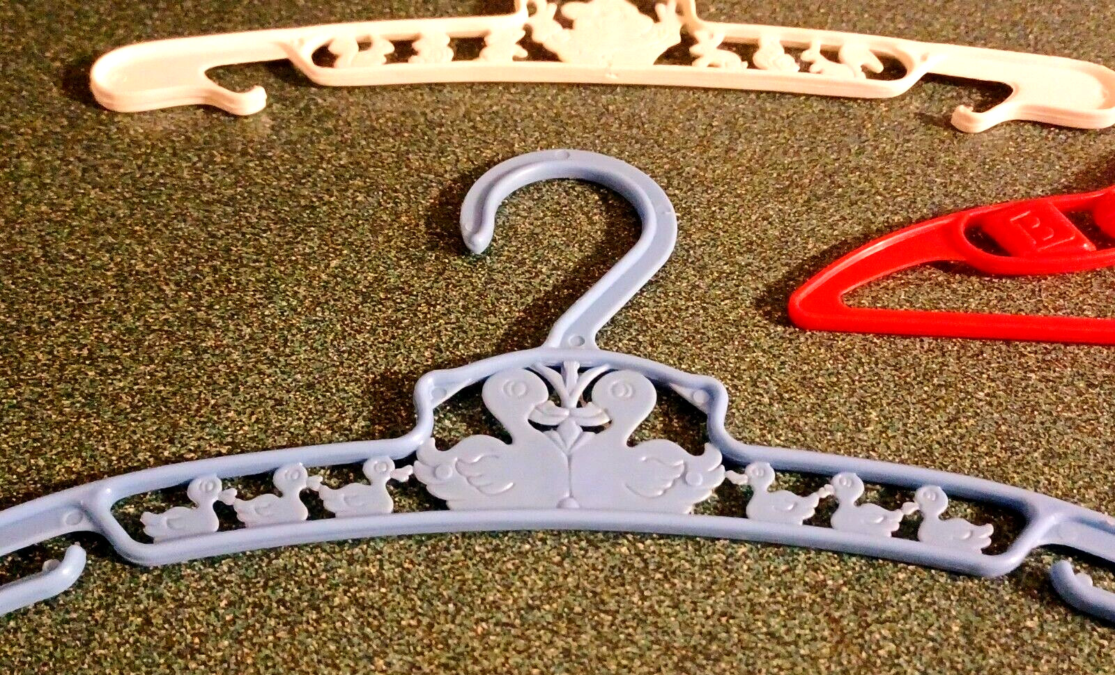 3 Vintage Baby Hangers Plastic Red Blue White Ducks Bears Clown VGC