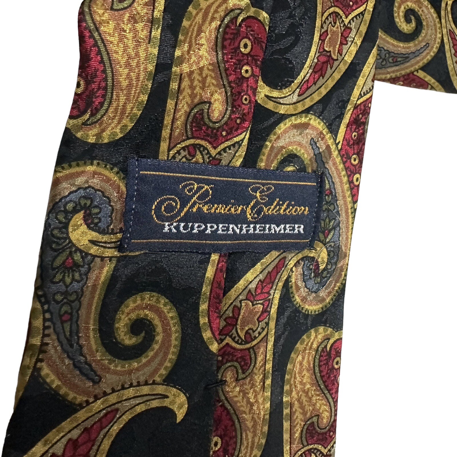 Kuppenheimer Black with Gold Red Paisley Print 100 Silk Tie Necktie 58 L