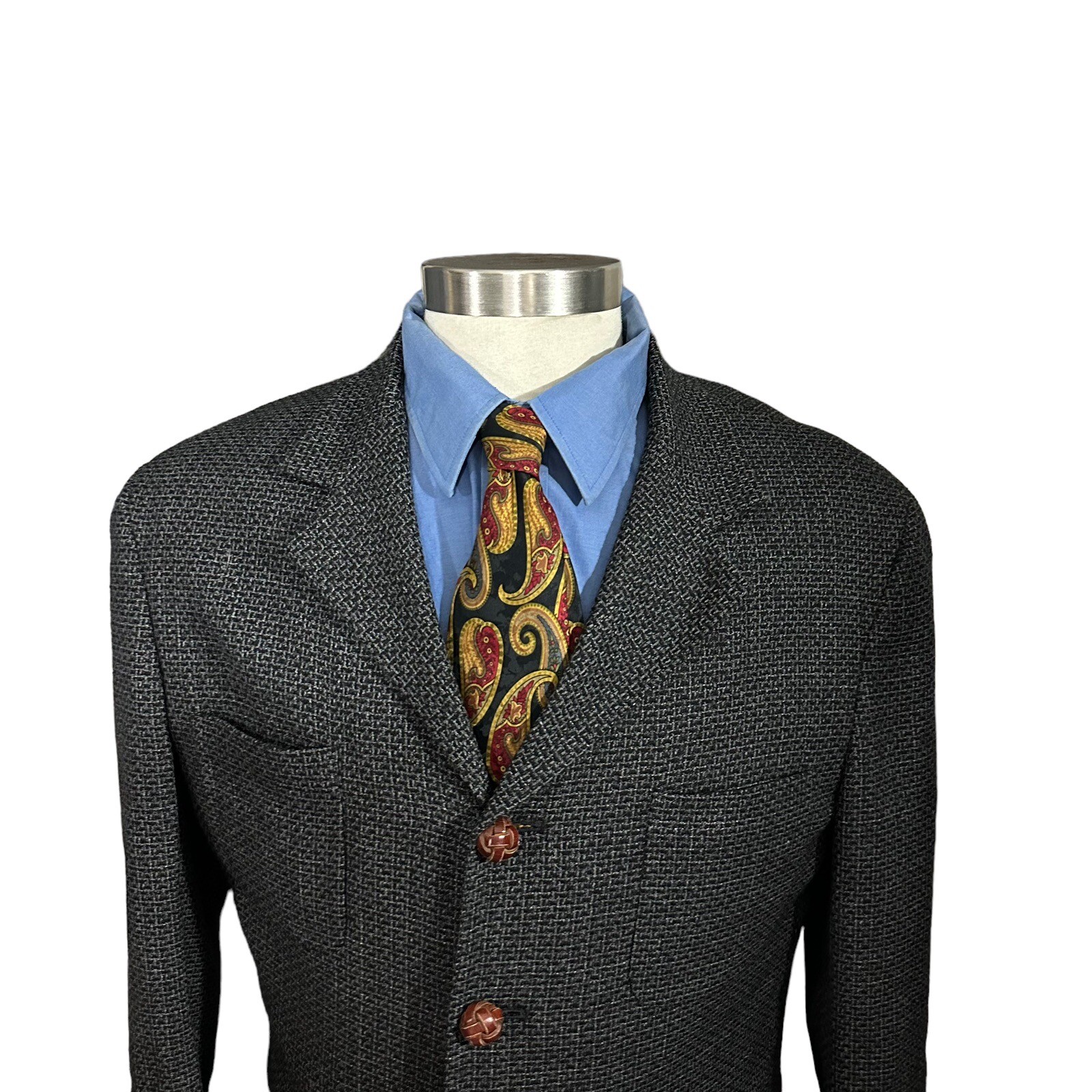 как выглядит Kuppenheimer Black with Gold Red Paisley Print 100 Silk Tie Necktie 58 L фото