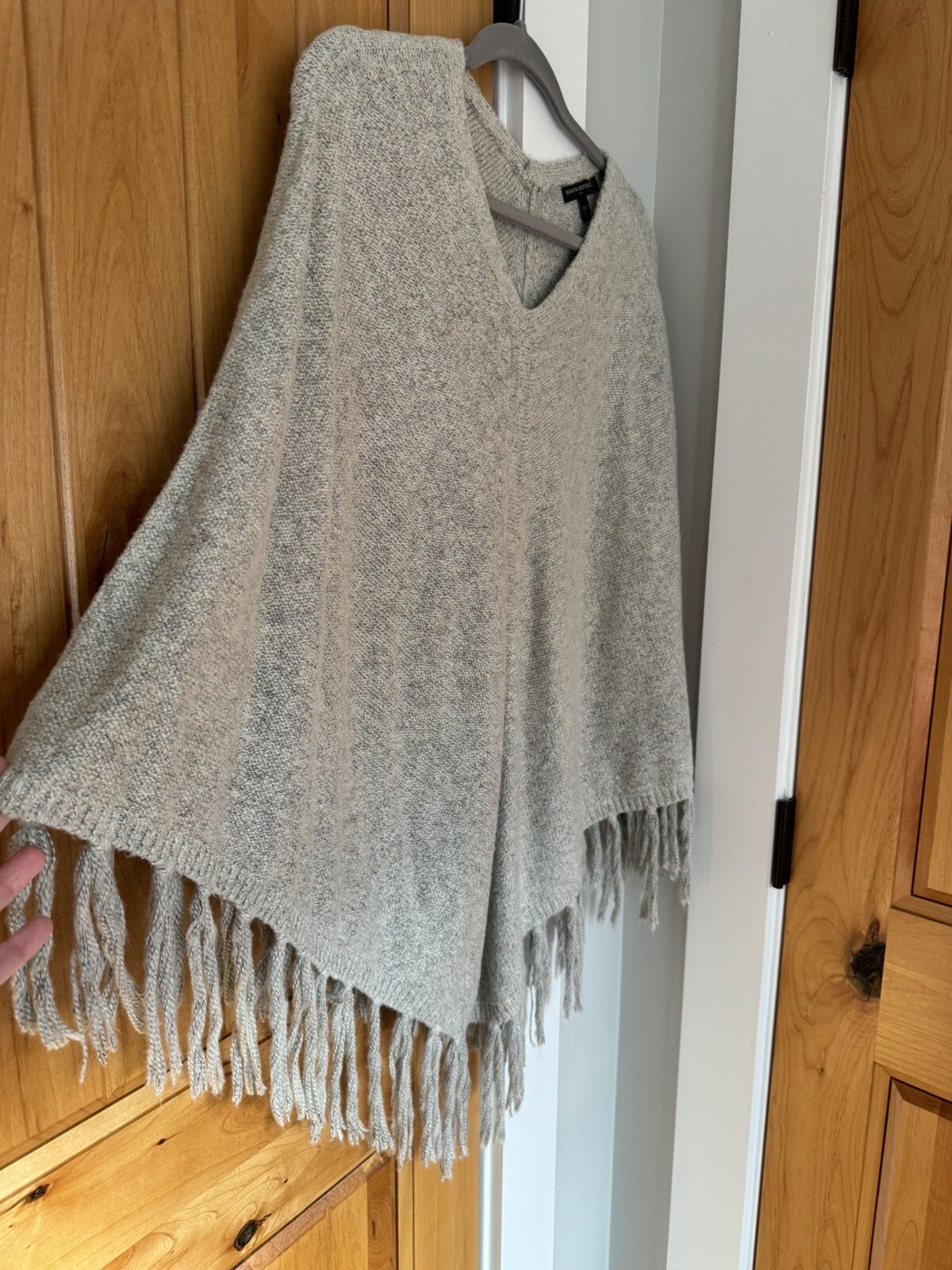как выглядит NWOT Banana Republic Cotton Blend Poncho Sweater With Fringe фото