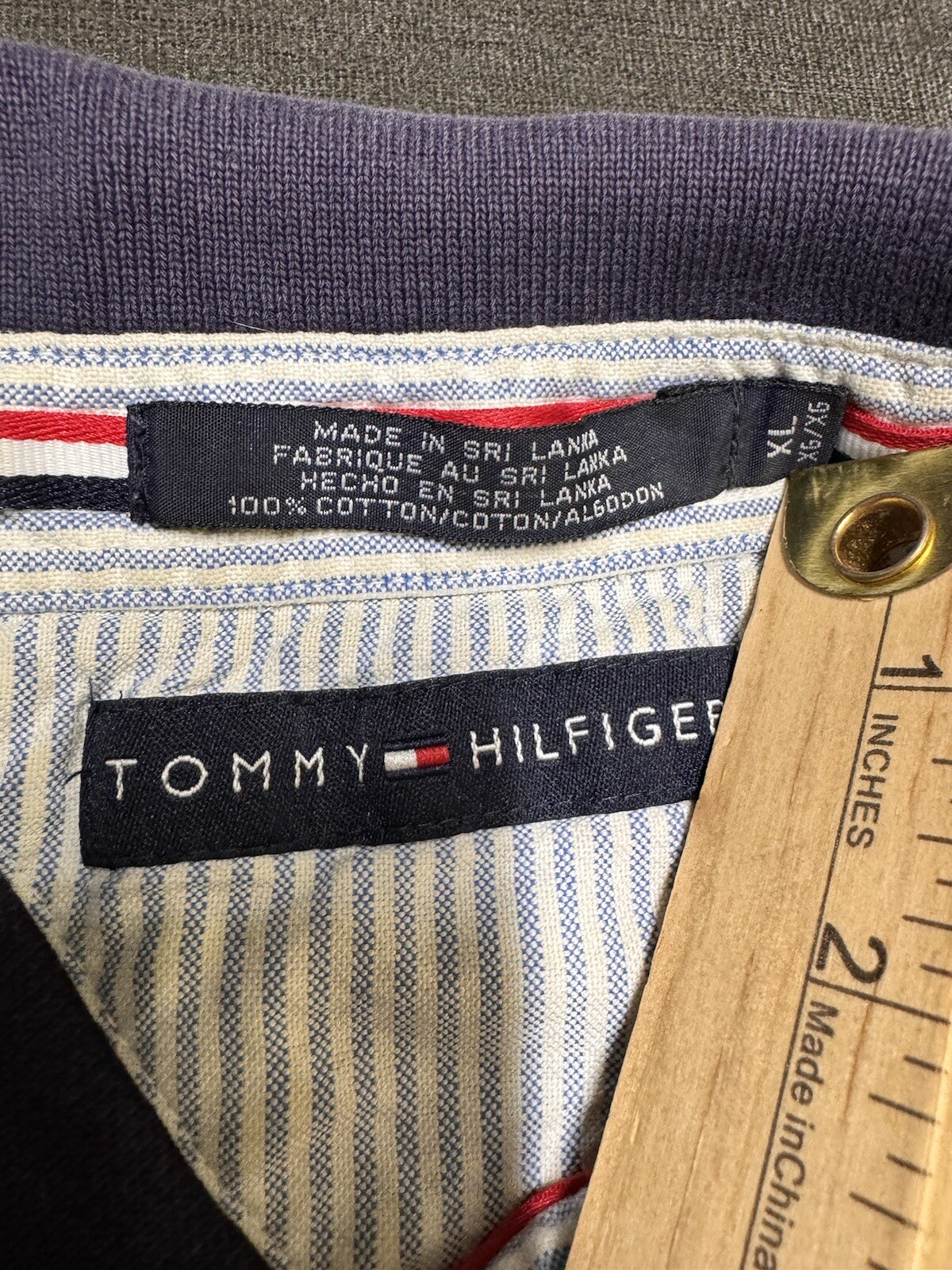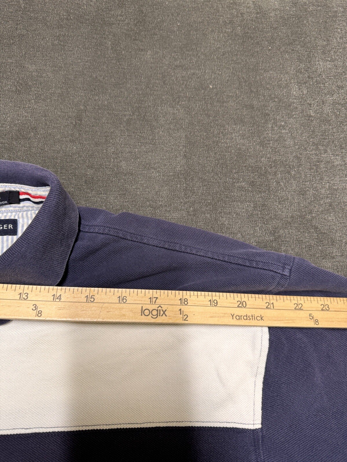 Vtg Tommy Hilfiger Shirt Mens XL Blue Thick Stripe Script Spell Out Y2k Polo