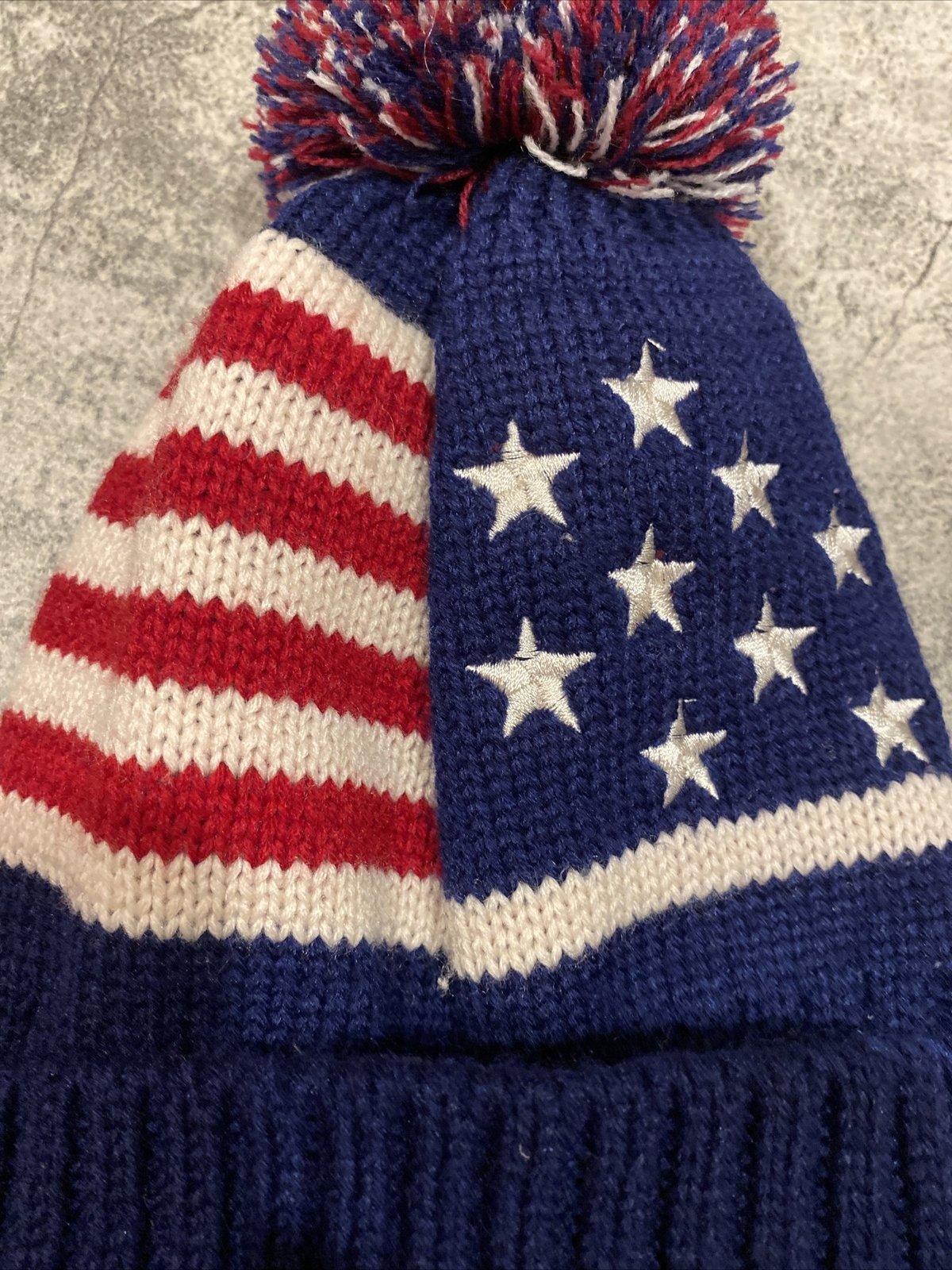 Adult patriotic winter hat with tassel unisex patriotic winter hat