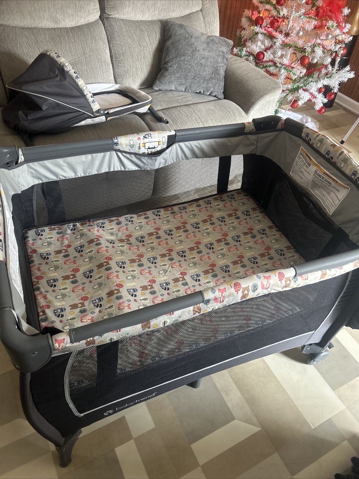 как выглядит Baby Trend Lil Snooze Deluxe II Nursery Center Playard - Forest Party Grey Used фото