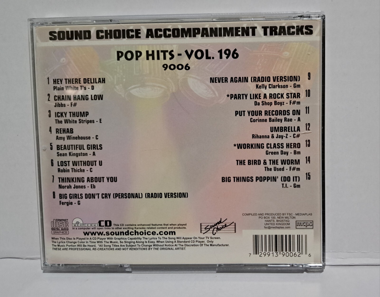 SOUND CHOICE KARAOKE SC 9006 SPOTLIGHT SERIES POP HITS VOL. 196 CDG