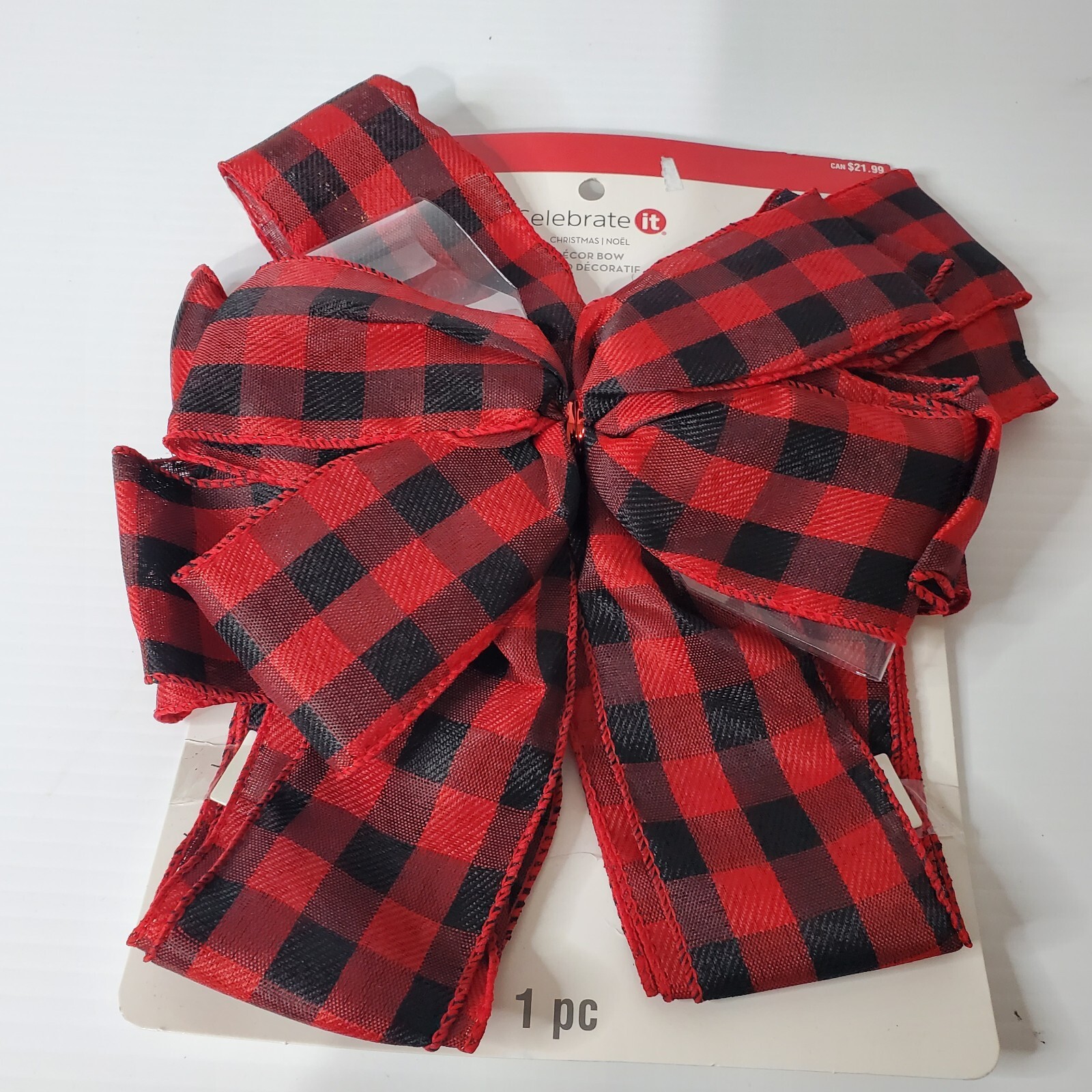 как выглядит Christmas Holiday Noel Red Black Plaid Ribbon Bow Gift Tree Decor Large 10