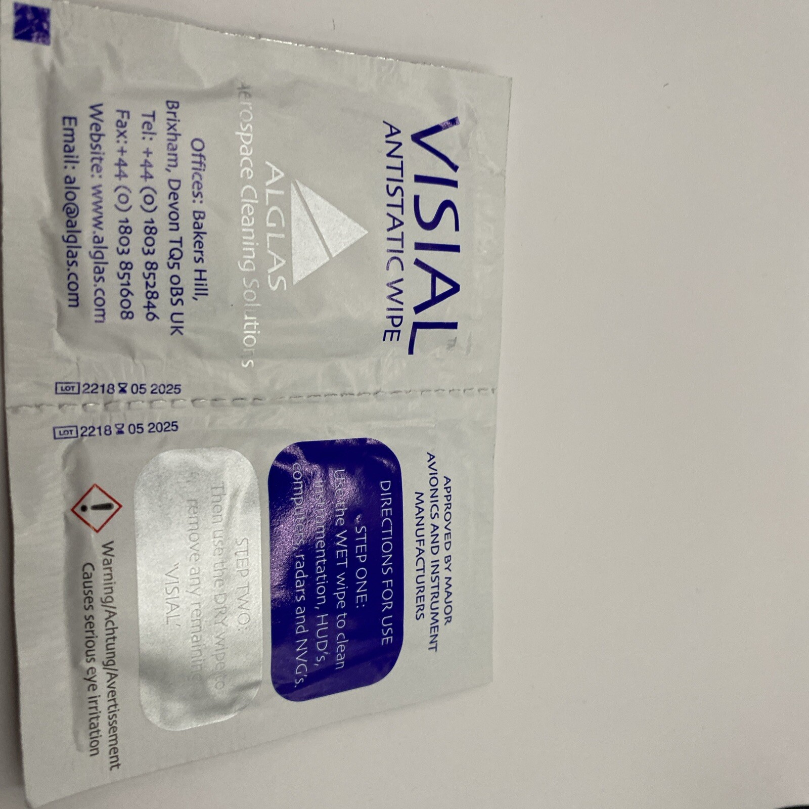 Visial Antistatic Avionics Wipes ALG/CR215 Qty.6