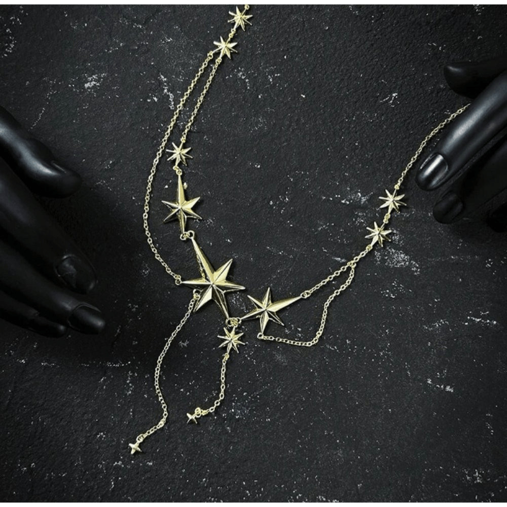 как выглядит Gold Plated Celestial Moon Star Dangle Drop Charm Necklace фото