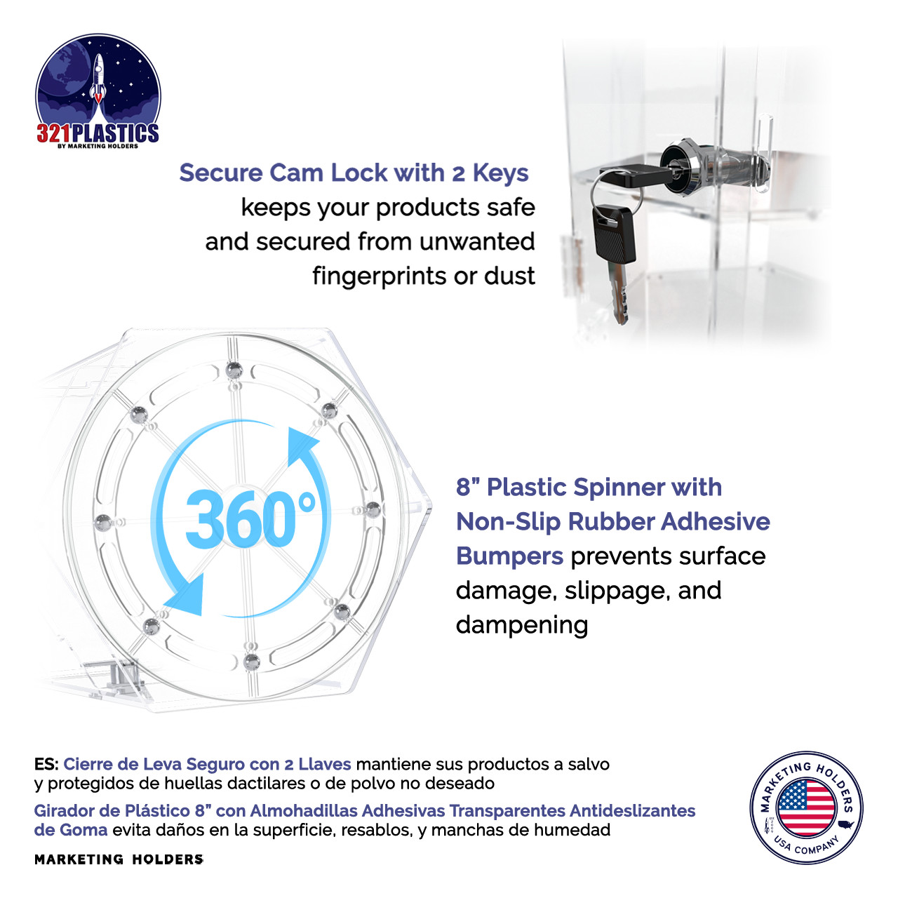 Spinning Acrylic Display Cabinet Clear Retail Locking Showcase