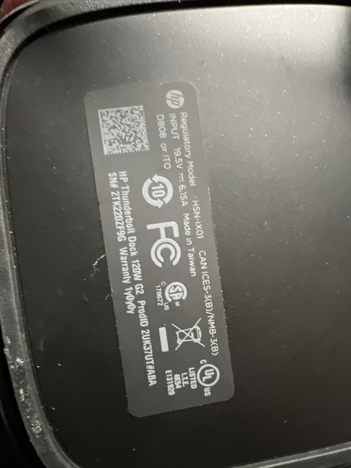 как выглядит HP Thunderbolt Dock 120W G2 Model HSN-IX01, No AC Adapter фото