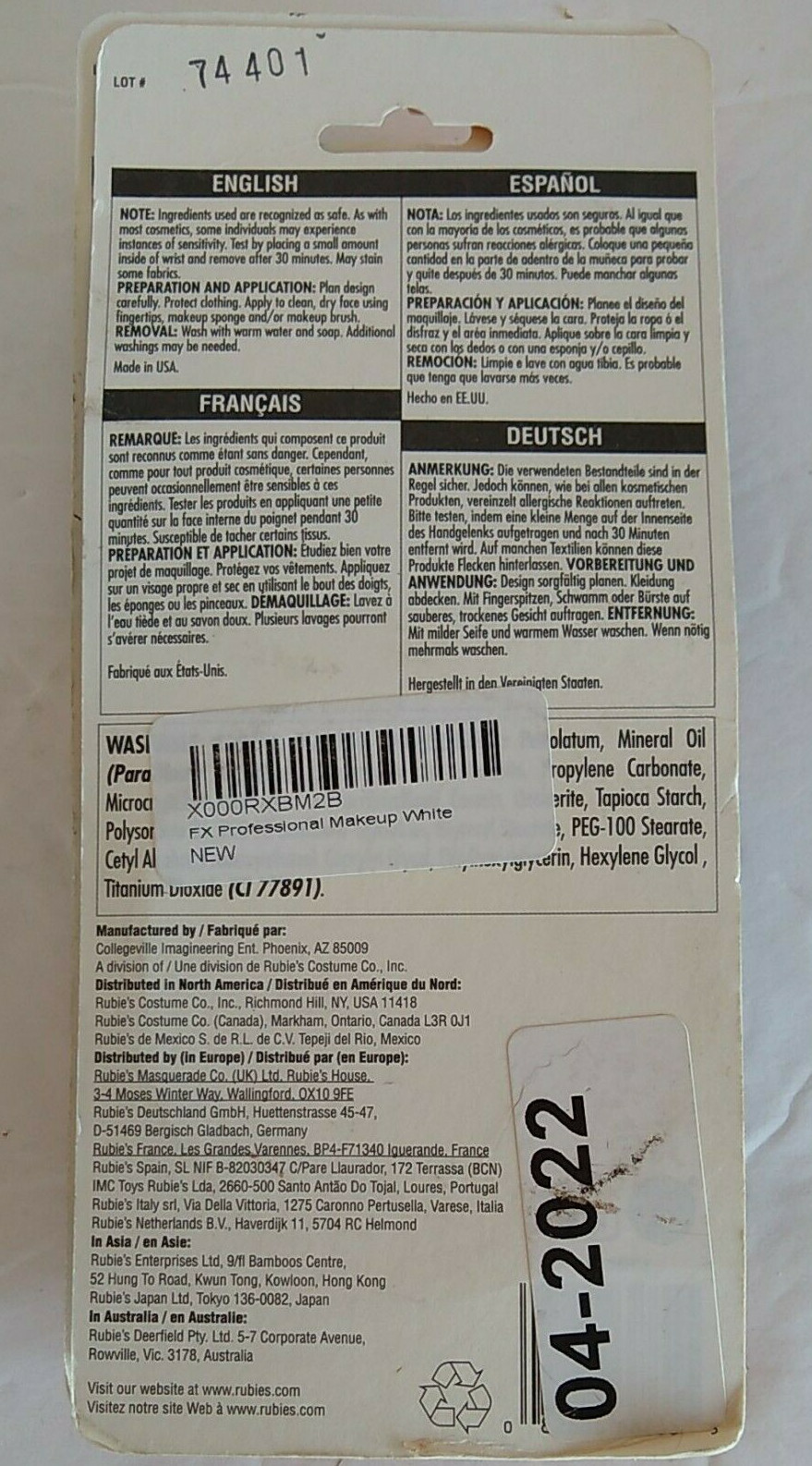 как выглядит White Face Paint 3 Pks Rubies Reel F/X Hollywood Quality Professional Makeup фото