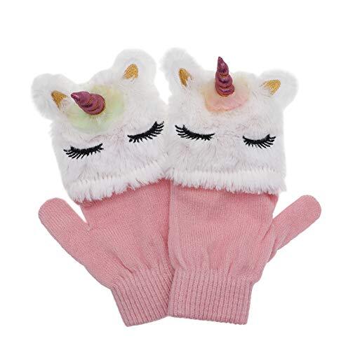 Kids Unicorn Flip Top Gloves with Mitten Cover Knitted Winter Fingerless White