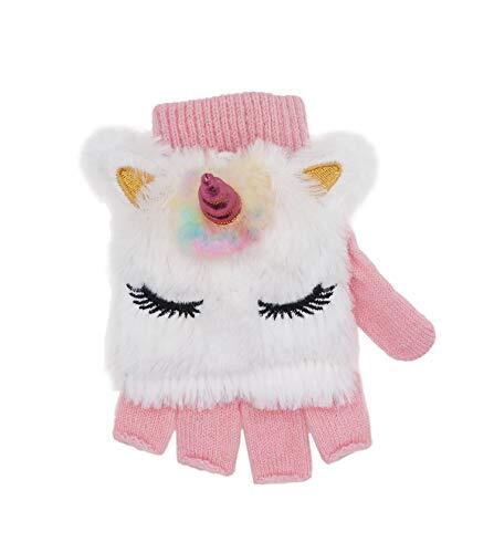 как выглядит Kids Unicorn Flip Top Gloves with Mitten Cover Knitted Winter Fingerless White фото