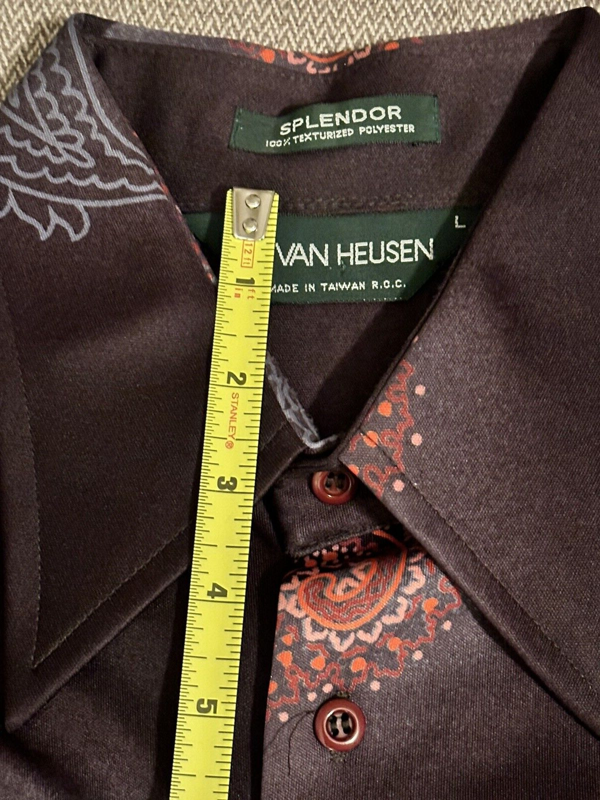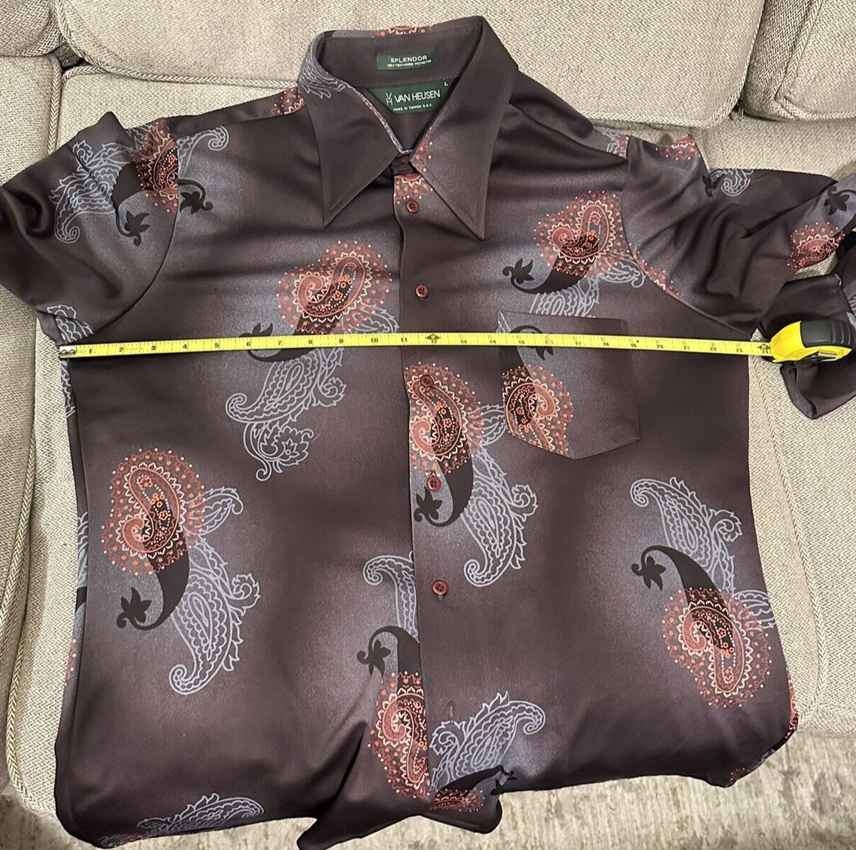 как выглядит Vintage 1970s Van Heusen Splendor Mens Shirt Lg Disco Polyester Leisure Wear фото