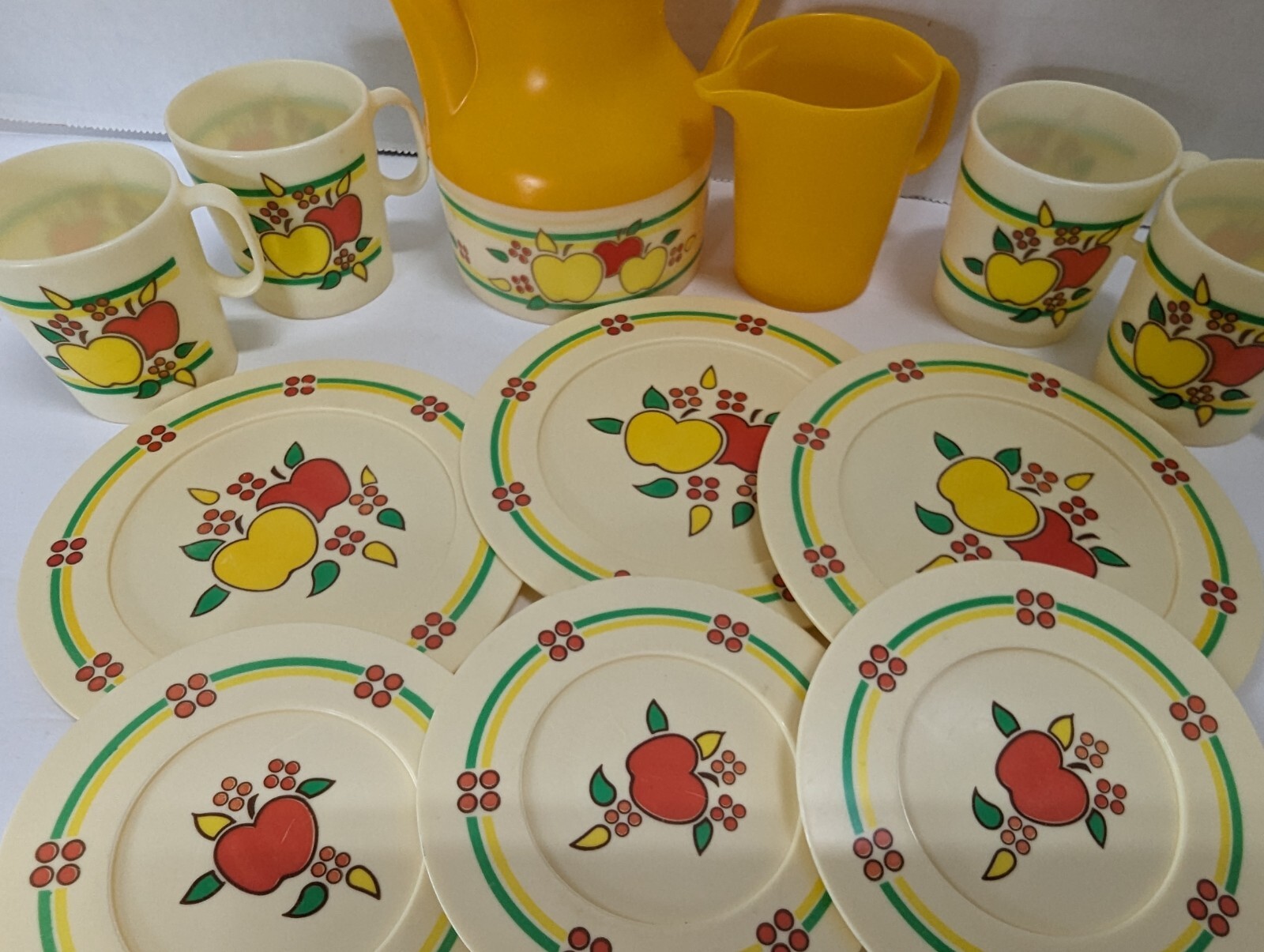 Vtg Chilton Globe Children's Toy Play Set Pretend Hard Plastic Apples 21 Pc EUC