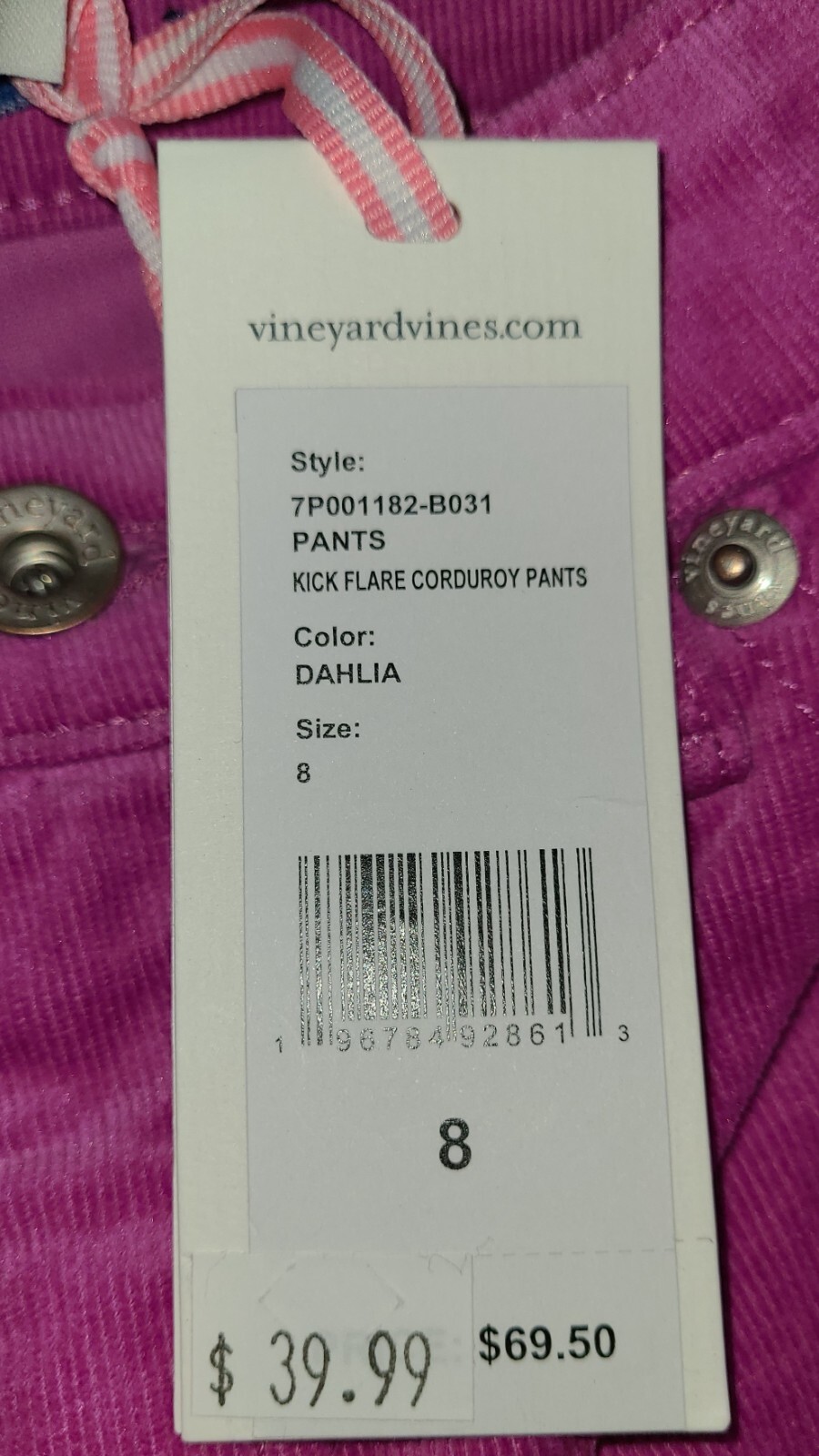 как выглядит Girls Kick Flare stretch Corduroy Pants dahlia size 8 Vineyard Vines zipper NWT фото