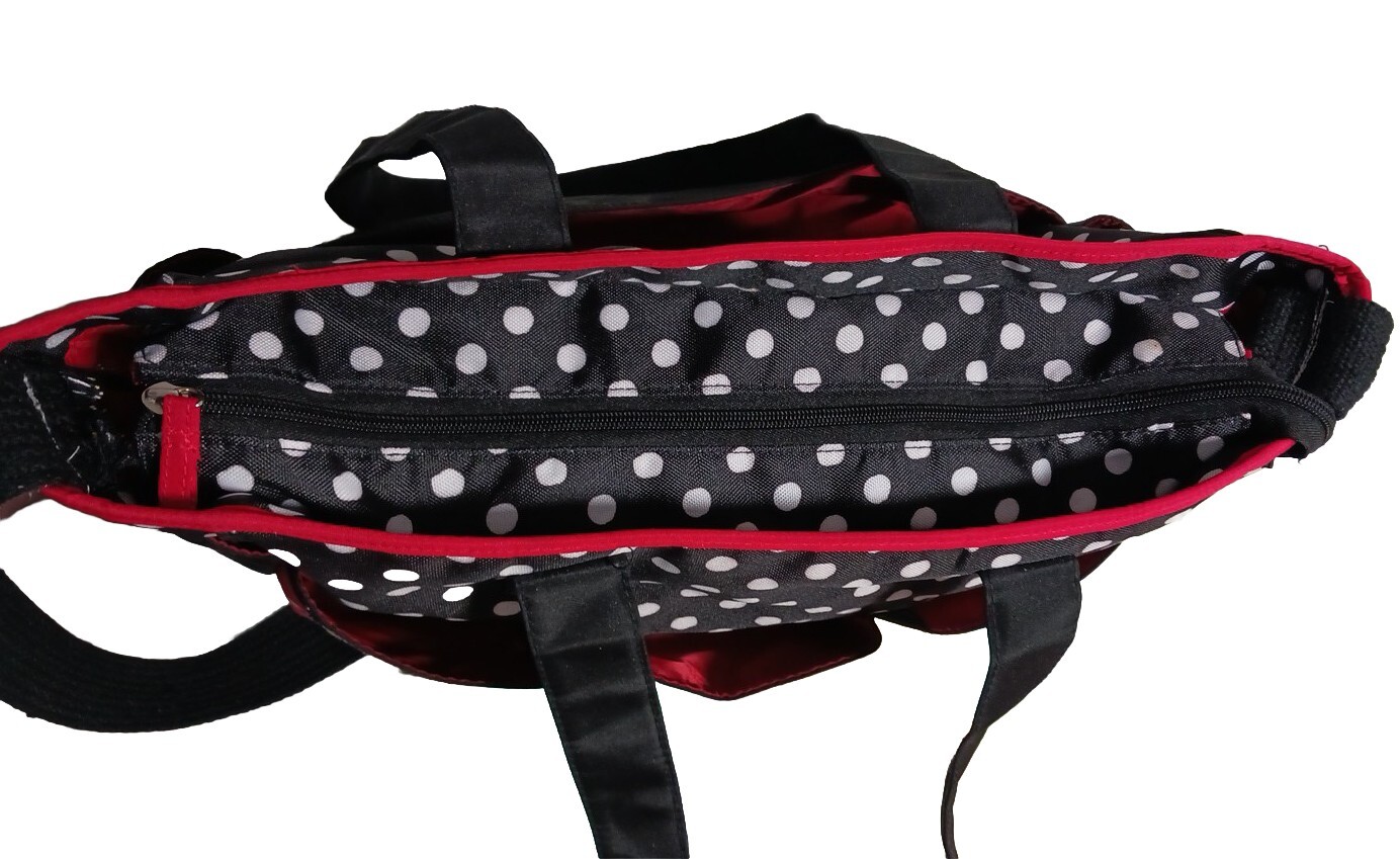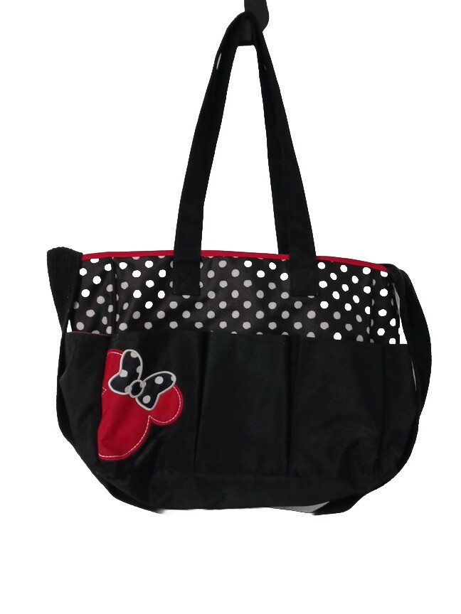 Diaper Bag Large Multi-Compartment Minnie Mouse Black Red White Dots
