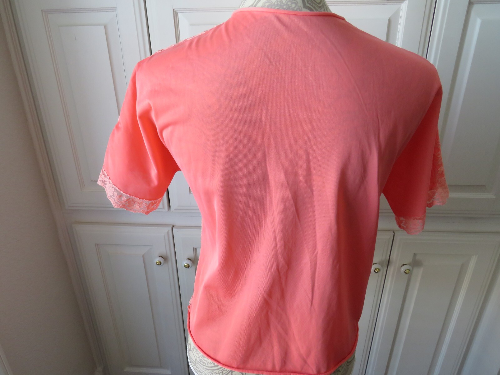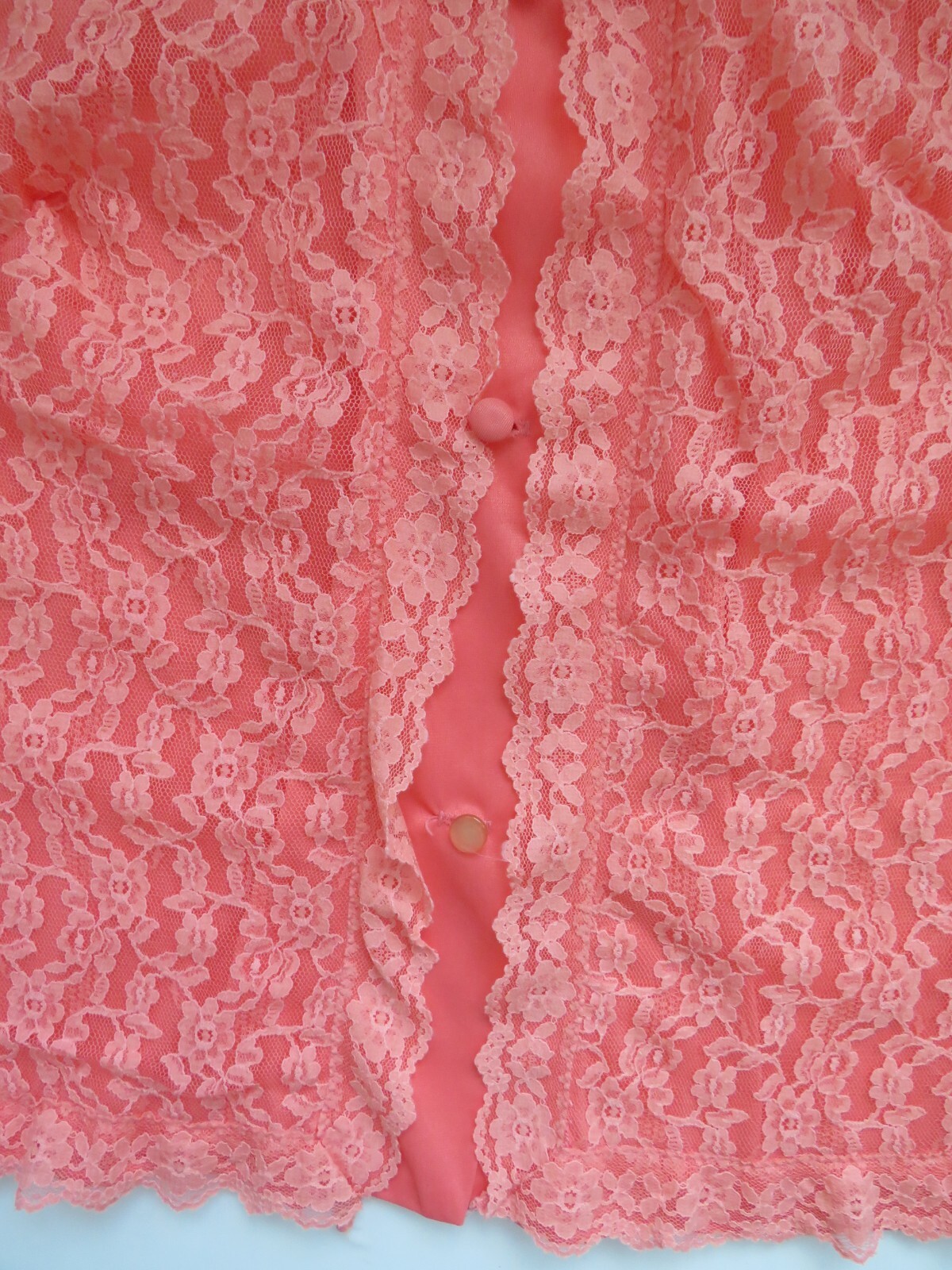 как выглядит Size 34 - 1970s Womens 2 Piece Pajama Set by Sears Roebuck Coral Lace Top фото