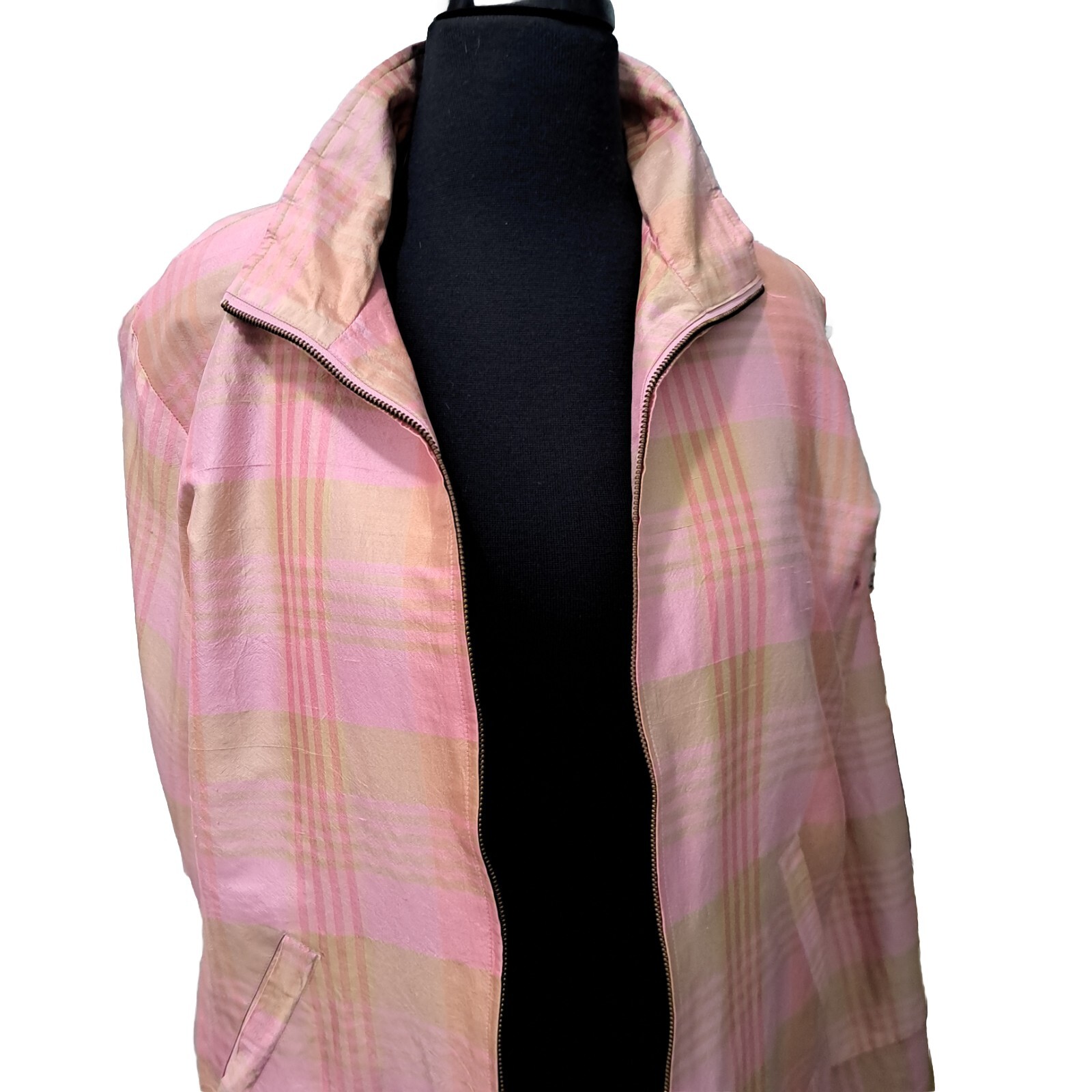 Vtg Pink Plaid Jacket Mureli 100 Silk Shell Bomber Jacket