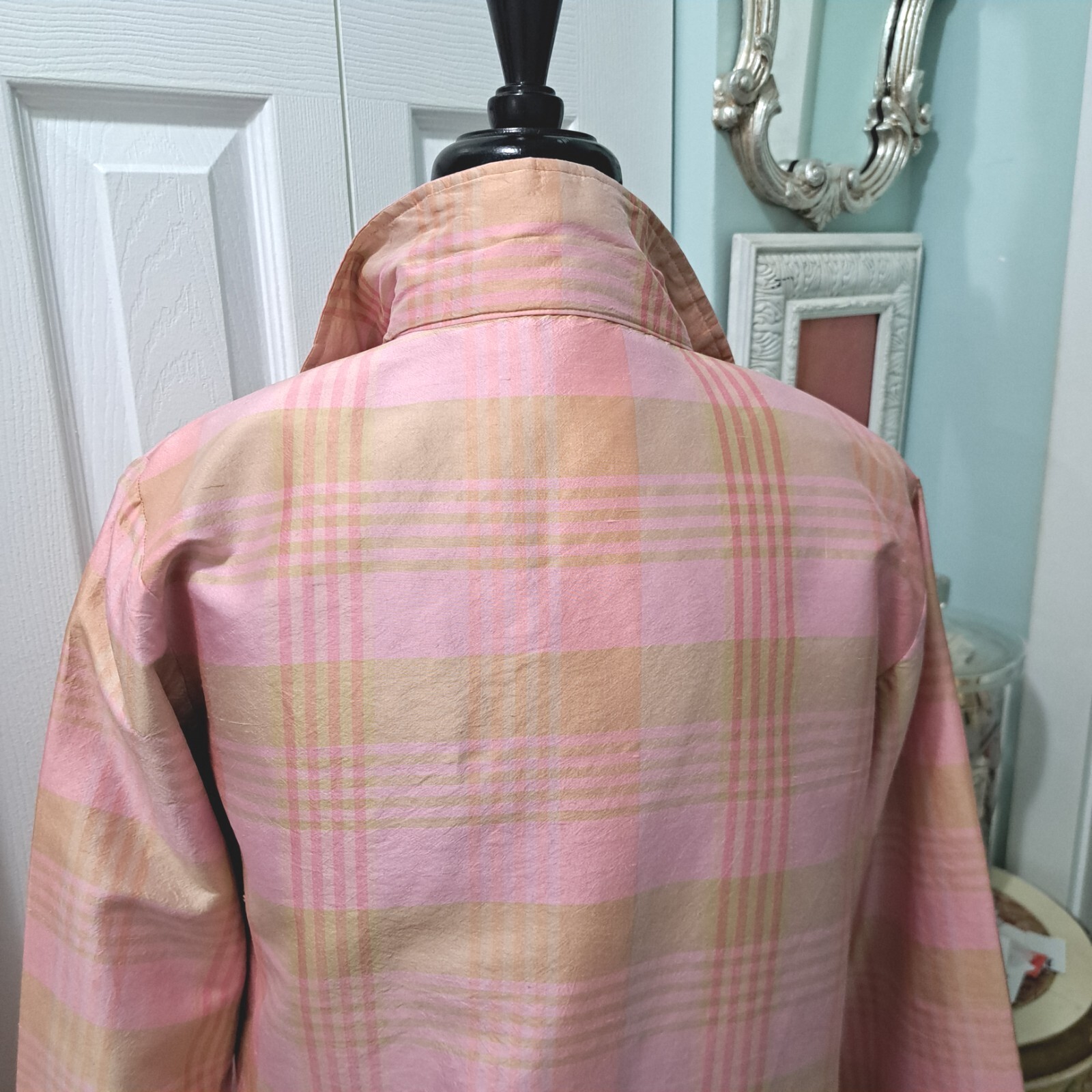 как выглядит Vtg Pink Plaid Jacket Mureli 100 Silk Shell Bomber Jacket фото