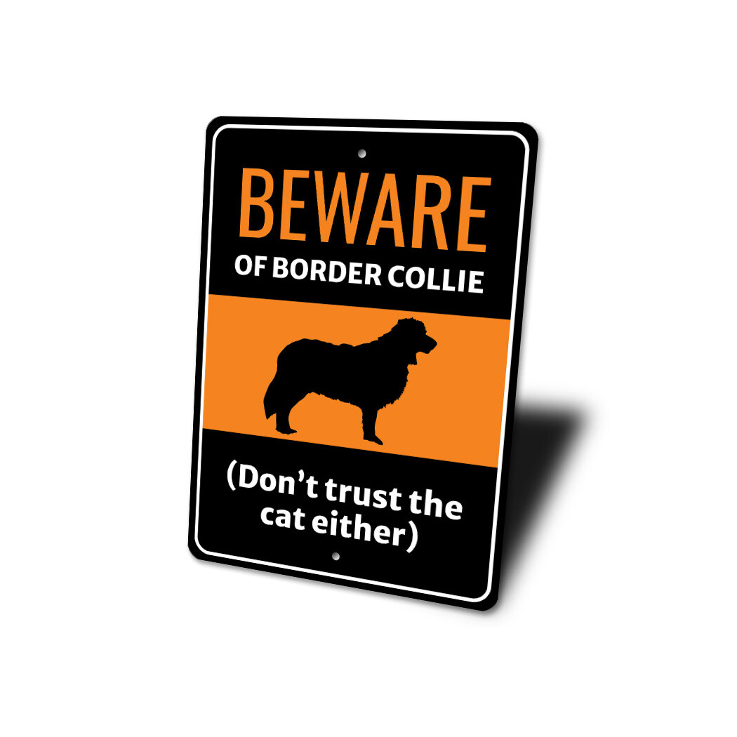 Beware Of Border Collie Dog Don't Trust The Cat Either Sign