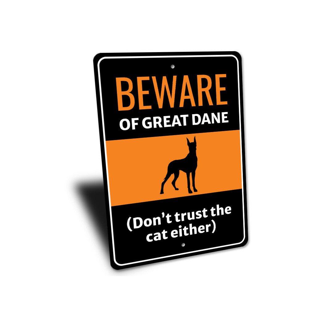 Beware Of Great Dane Dog Don't Trust The Cat Either Sign