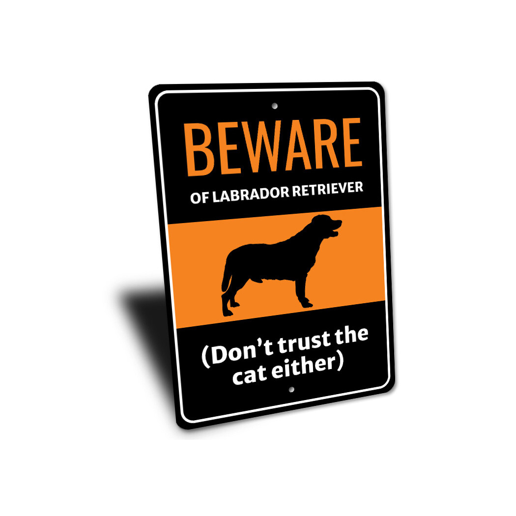 Beware Of Labrador Retriever Dog Don't Trust The Cat Either Sign