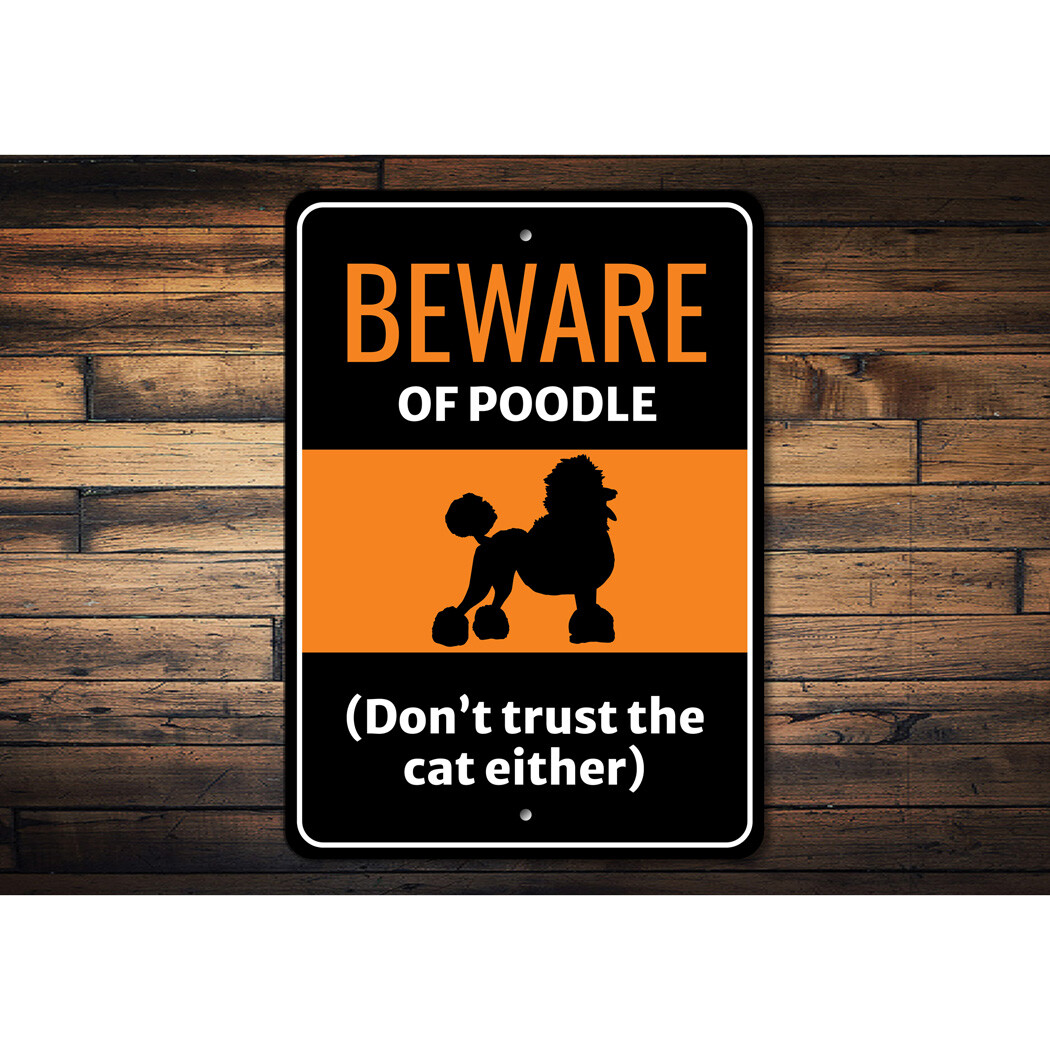 Beware Of Poodle Dog Don't Trust The Cat Either Sign